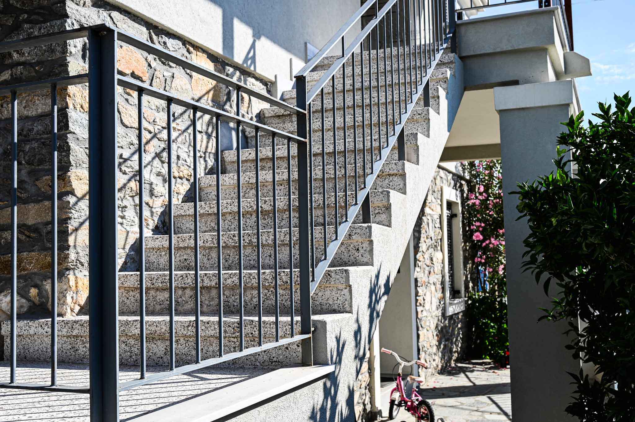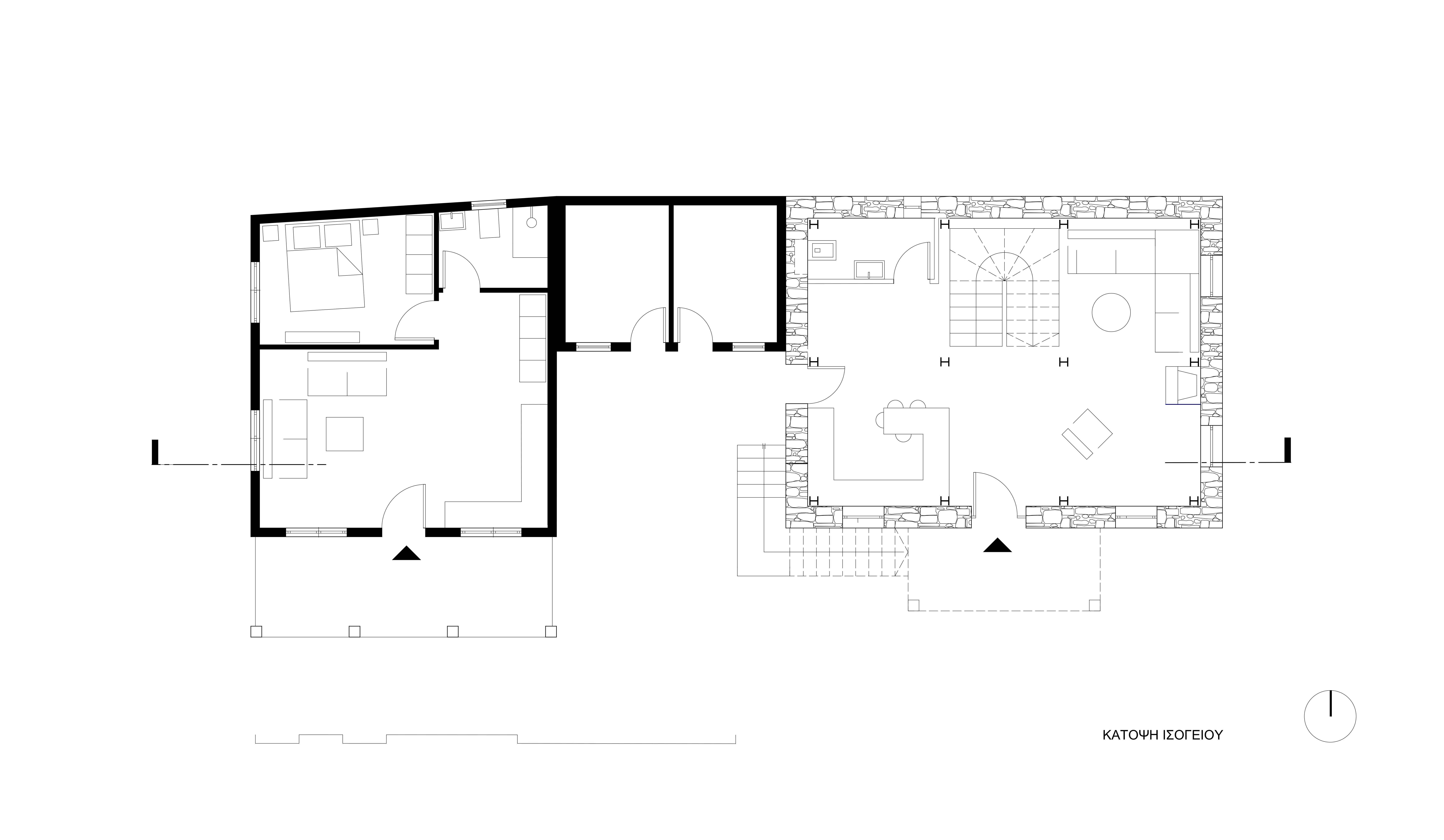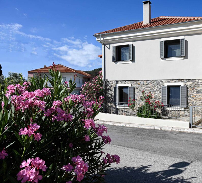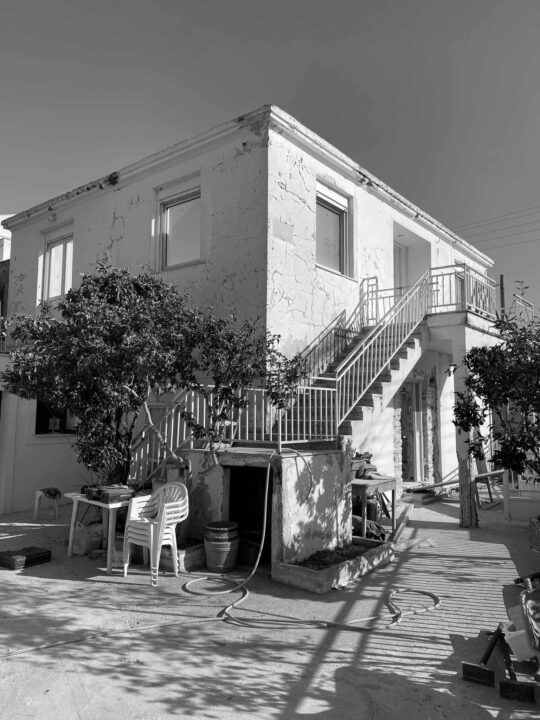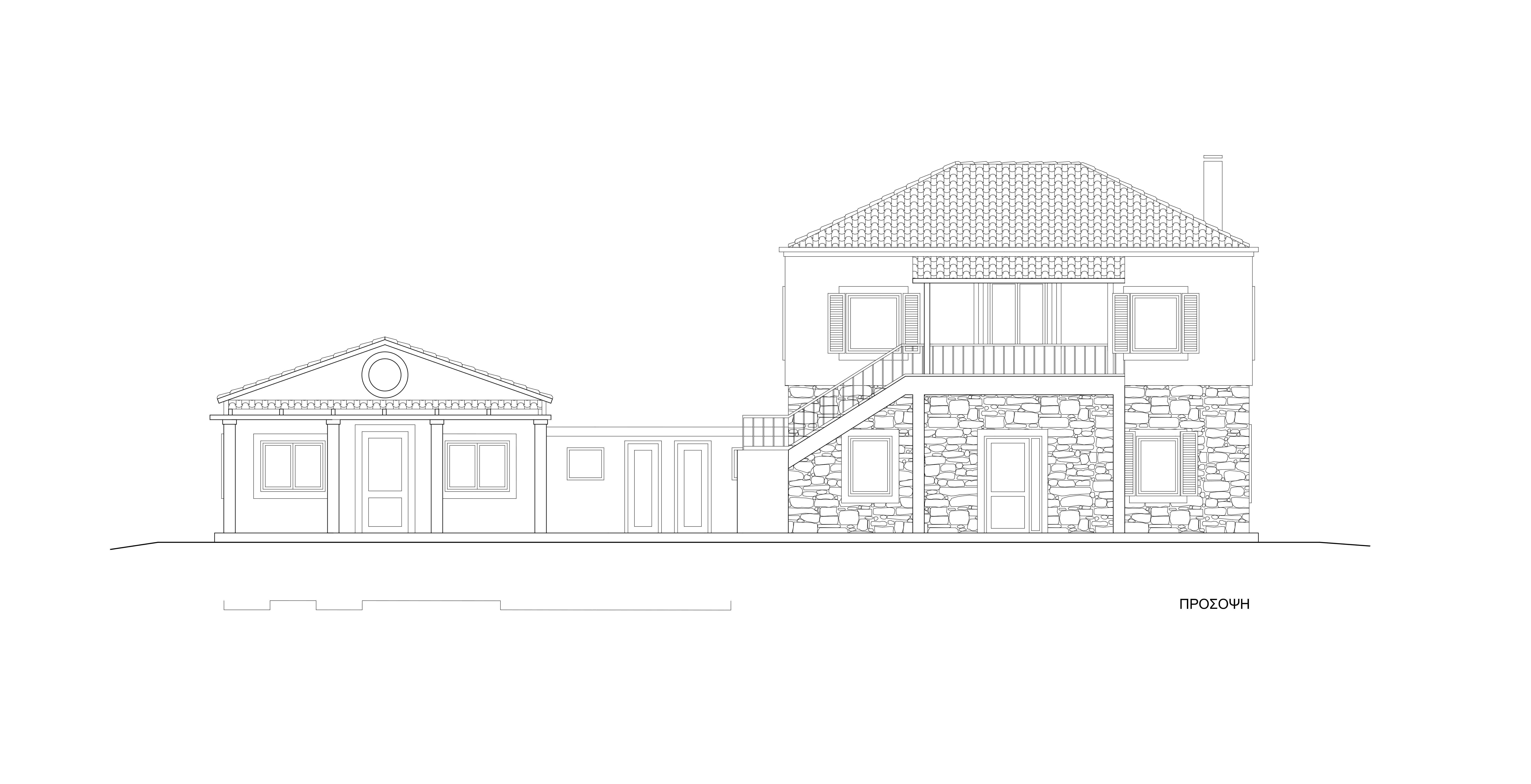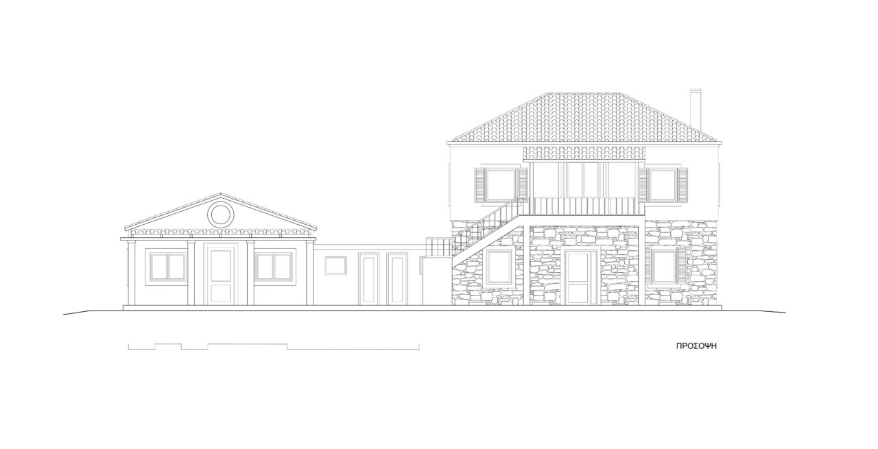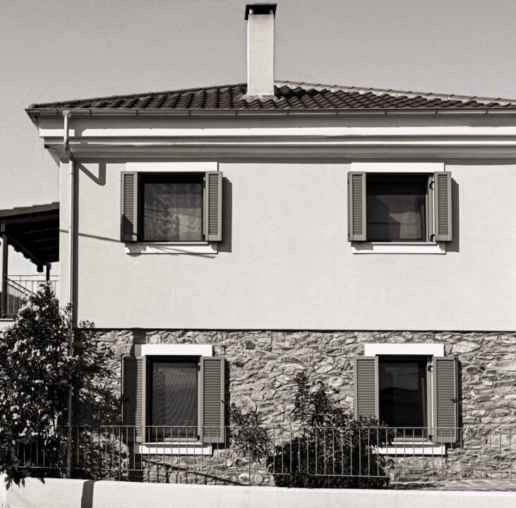 Το λιθόκτιστο υφιστάμενο κτίσμα χρονολογείτε από το 1970 και βρίσκεται στον Άγιο Αντρέα Καβάλας. Πρόκειται για ένα δείγμα λαϊκής παραδοσιακής αρχιτεκτονικής ορθογωνικής κάτοψης δέκα επι οκτώ μέτρων, το οποίο κατασκευάστηκε από λαϊκούς τοπικούς πετράδες. Χτίστηκε σε δυο οριζόντιες ζώνες , λιθοδομής επι εδάφους καθώς και οπτοπλινθοδομής στην ζώνη του πρώτου ορόφου. Στόχος της αρχιτεκτονικής επίλυσης αποτέλεσε το γεγονός του σεβασμού και της διατήρησης του κελύφους καθώς και η ανάδειξη της λιθοδομής. Το εξωτερικό κλιμακοστάσιο διατηρήθηκε και το χειροποίητο μωσαϊκό με το οποίο είναι επικαλυμμένα τα σκαλοπάτια συντηρήθηκε. Στον ισόγειο χώρο επιτελούνται οι ανάγκες διημέρευσης μιας τετραμελής οικογένειας ενώ στον επάνω όροφο ο οποίος συνδέεται με εσωτερική κλίμακα υπάρχουν οι χώροι ξεκούρασης της οικογενείας. Η τεχνική που χρησιμοποιήθηκε για την στατική αποκατάσταση της οικίας , αποτέλεσε η δημιουργία νέου φέροντος οργανισμού από χάλυβα, καθότι αυτός, περικλείεται απλά, από την αρχική φέρουσα λιθοδομή.