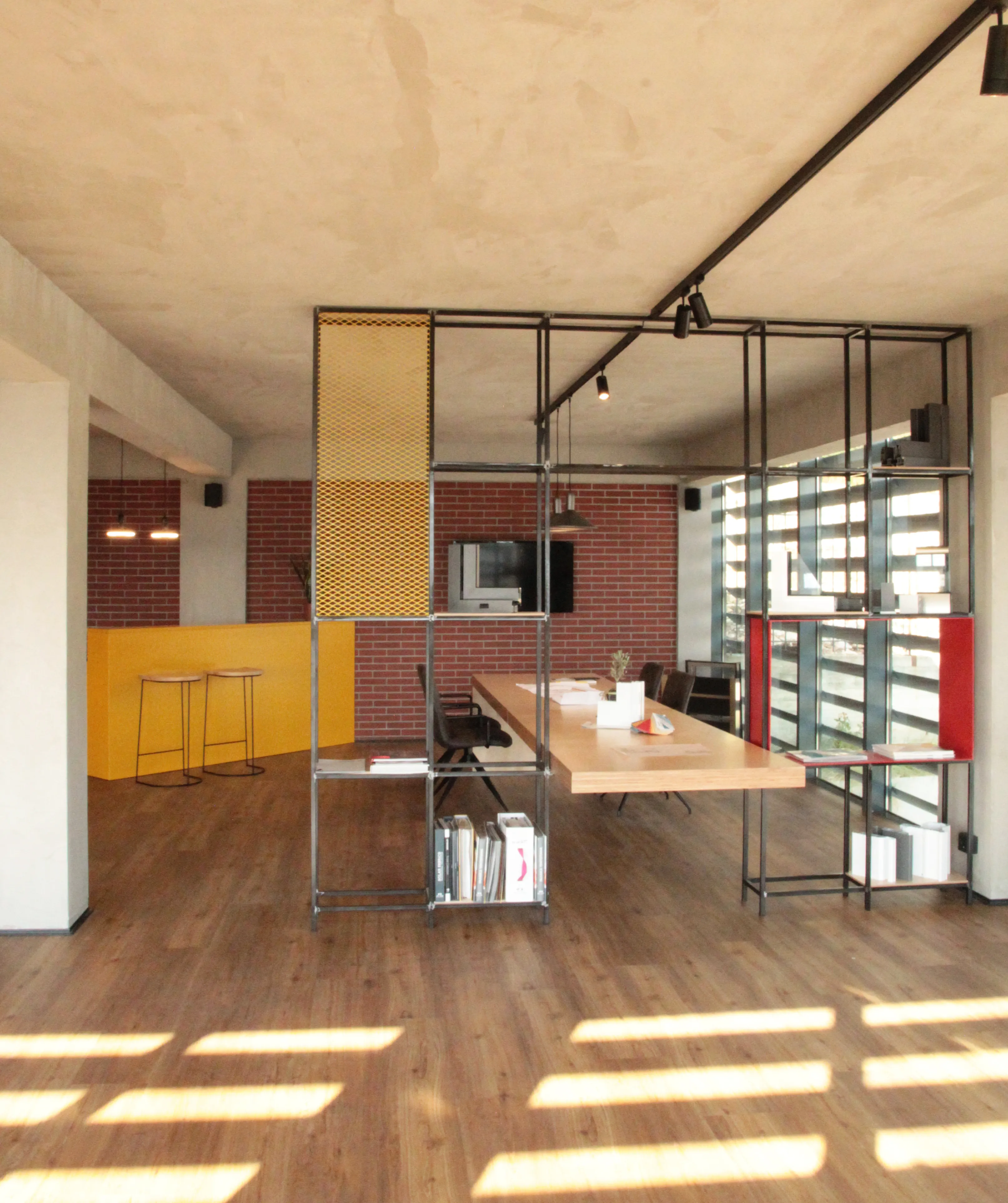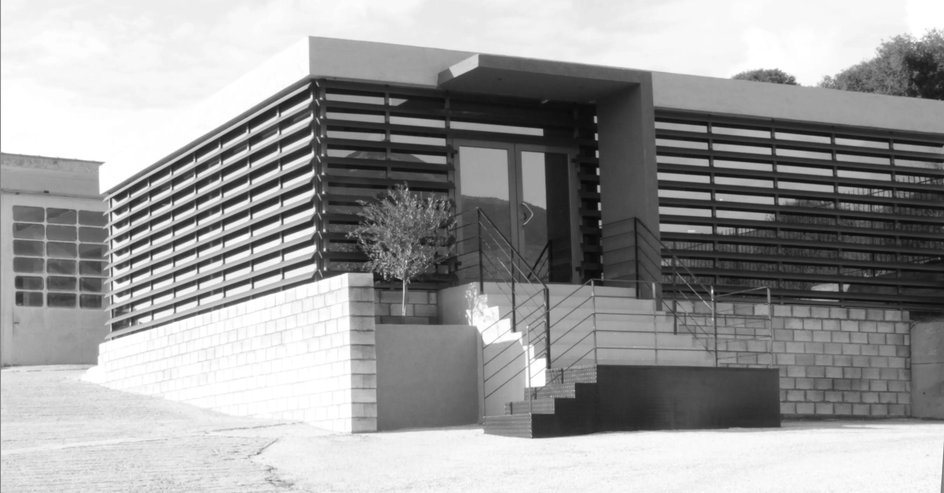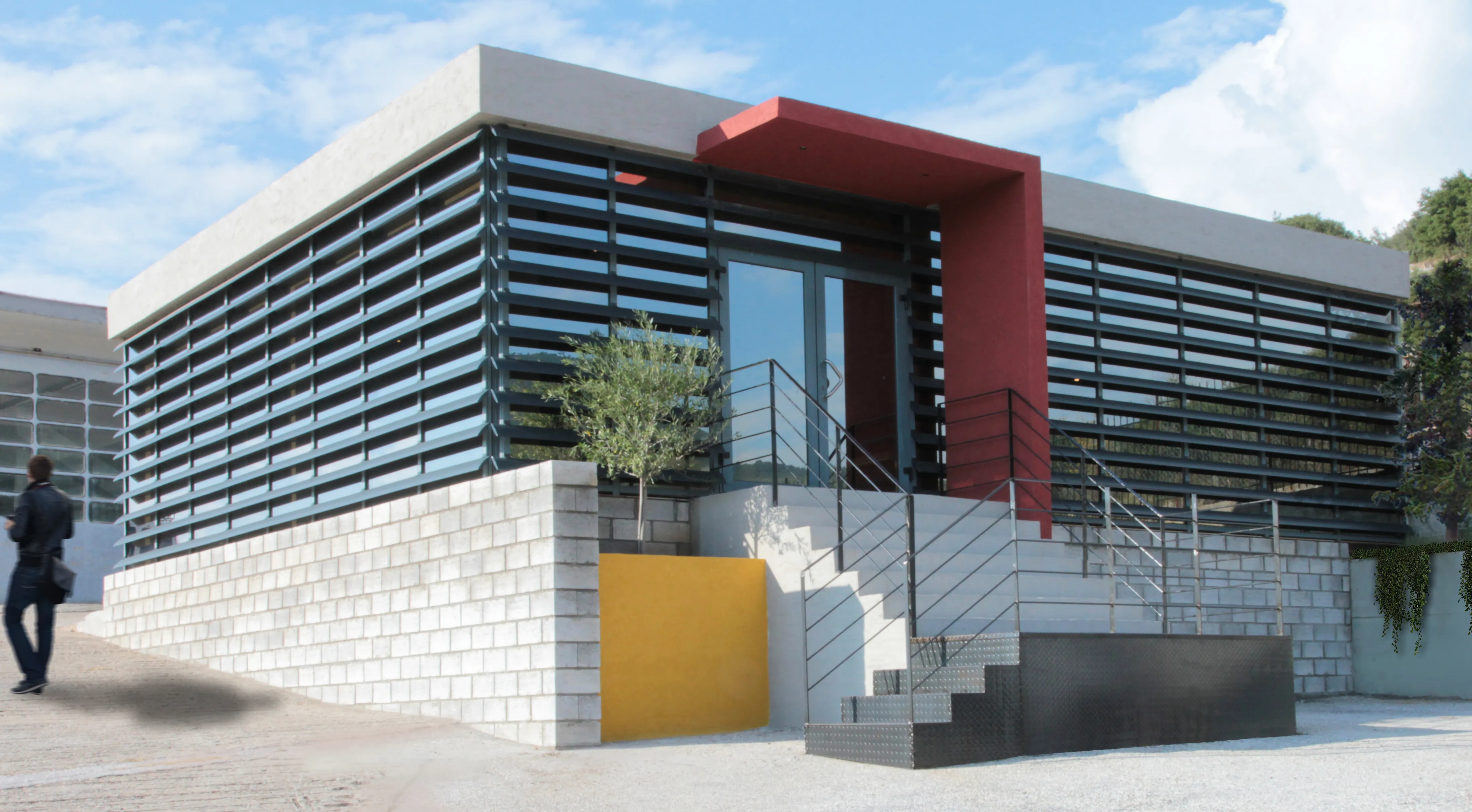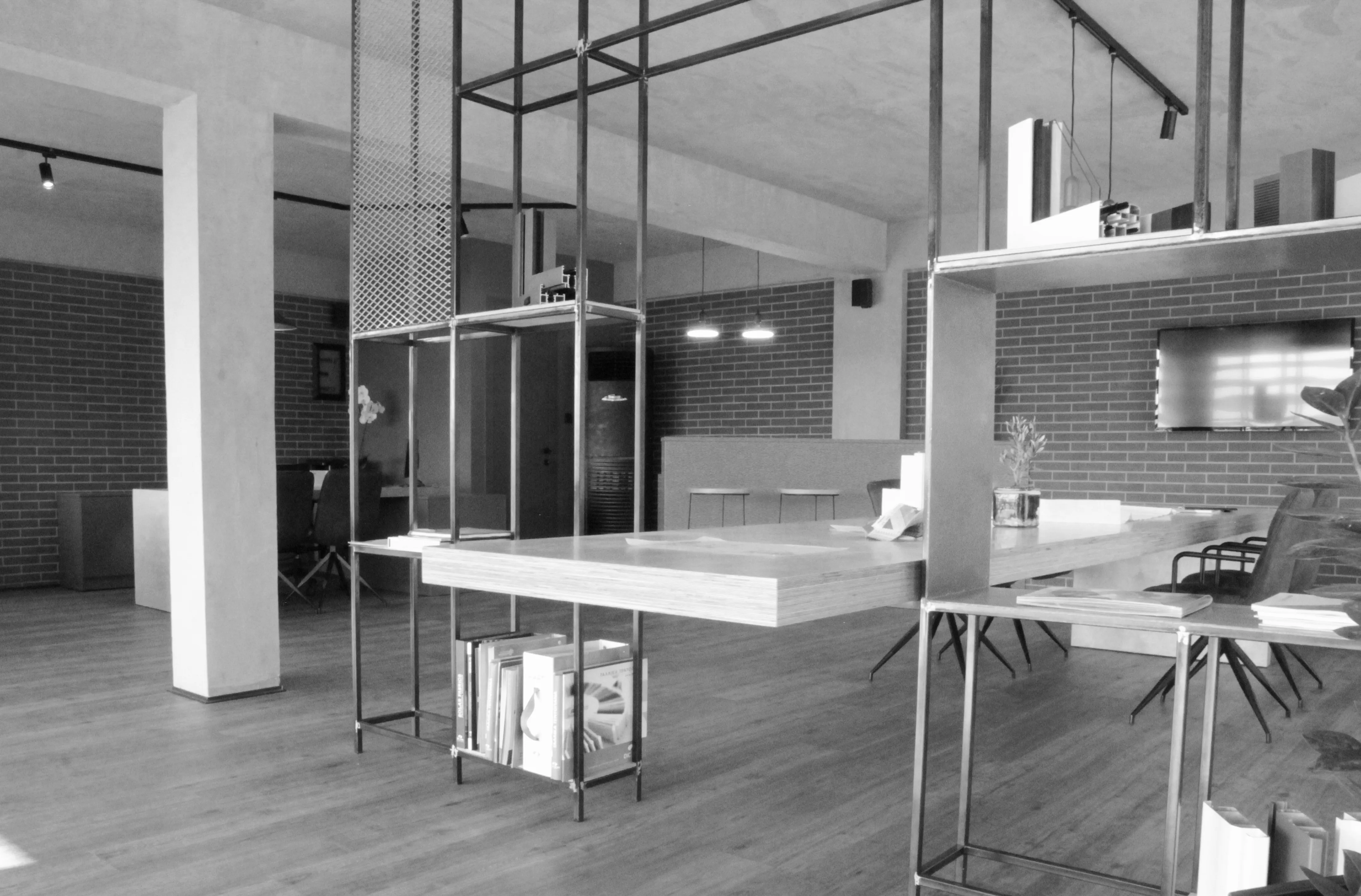 Το κέλυφος του κτηρίου, προϋπήρχε (σε διαφορετική μορφή) μαζί με ένα ακόμα βιοτεχνικό χώρο, και είναι εκτός του αστικού ιστού. Ως κεντρική ιδέα, αποτέλεσε το γεγονός της ενασχόλησης της εταιρείας με τις μεταλλικές κατασκευές, και συνεπώς ο βιομηχανικός σχεδιασμός του χώρου απόδωσε αυτό το κριτήριο. Στόχος και αφετηρία της κεντρικής ιδέας ήταν ο χώρος να αποπνέει την αίσθηση της δημιουργικότητας αλλά να εκφράζει και την ενασχόληση της εταιρείας με τα πρωτεύων υλικά π.χ. των μετάλλων. Είναι εμφανές η επιρροή των μοντερνιστικών χαράξεων, και μάλιστα του κινήματος de stijl, τα οποία αποδίδονται με σύγχρονο αλλά και διασκευασμένο τρόπο. Το εσωτερικό, οργανώθηκε με στόχο τους προσωπικούς χώρους εργασίας των ιδιοκτήτων, αλλά παράλληλα και ένα κεντρικό πυρήνα ως χώρος παρουσίασης – συλλογικής εργασίας και συζήτησης με τους επισκέπτες. Είναι εμφανής η αποκάλυψη του σκυροδετημένου φέρων οργανισμού, ο οποίος αποδίδεται με απλά και αδρά κονιάματα. Παράλληλα, στους τοίχους πλήρωσης προβάλλονται τα εμφανές τούβλα, ενώ επιπρόσθετα, το ακατέργαστο μέταλλο αποδίδει με αρτίστικο τρόπο την διάθεση της δημιουργικότητας. Τέλος, ως χαρακτηριστική πινελιά, είναι η φύτευση μιας ελιάς στην είσοδο, ως σύμβολο της ευημερίας και ευμάρειας, καθώς και στο υπόλοιπο τοπίο, υπάρχουν διάσπαρτες.