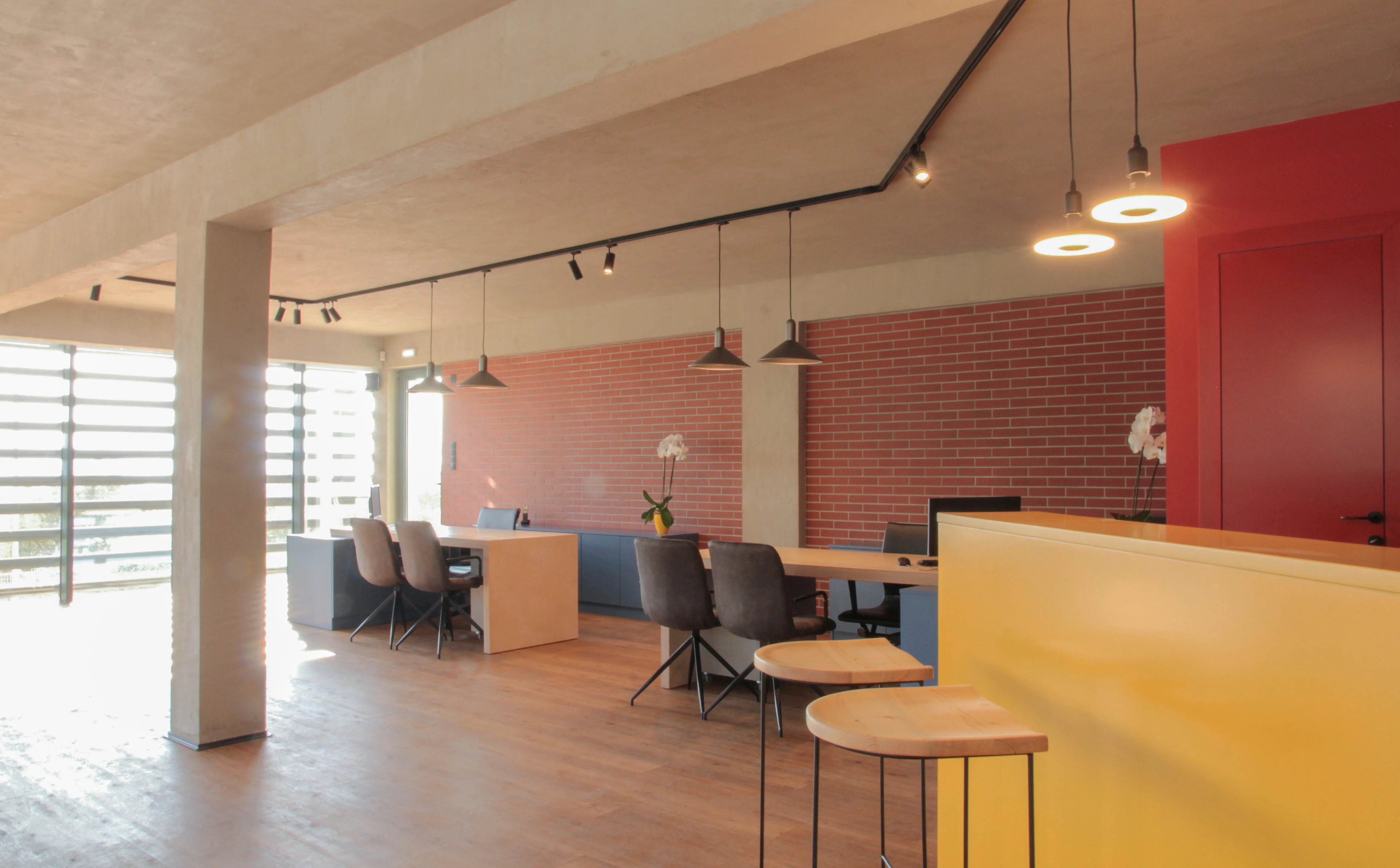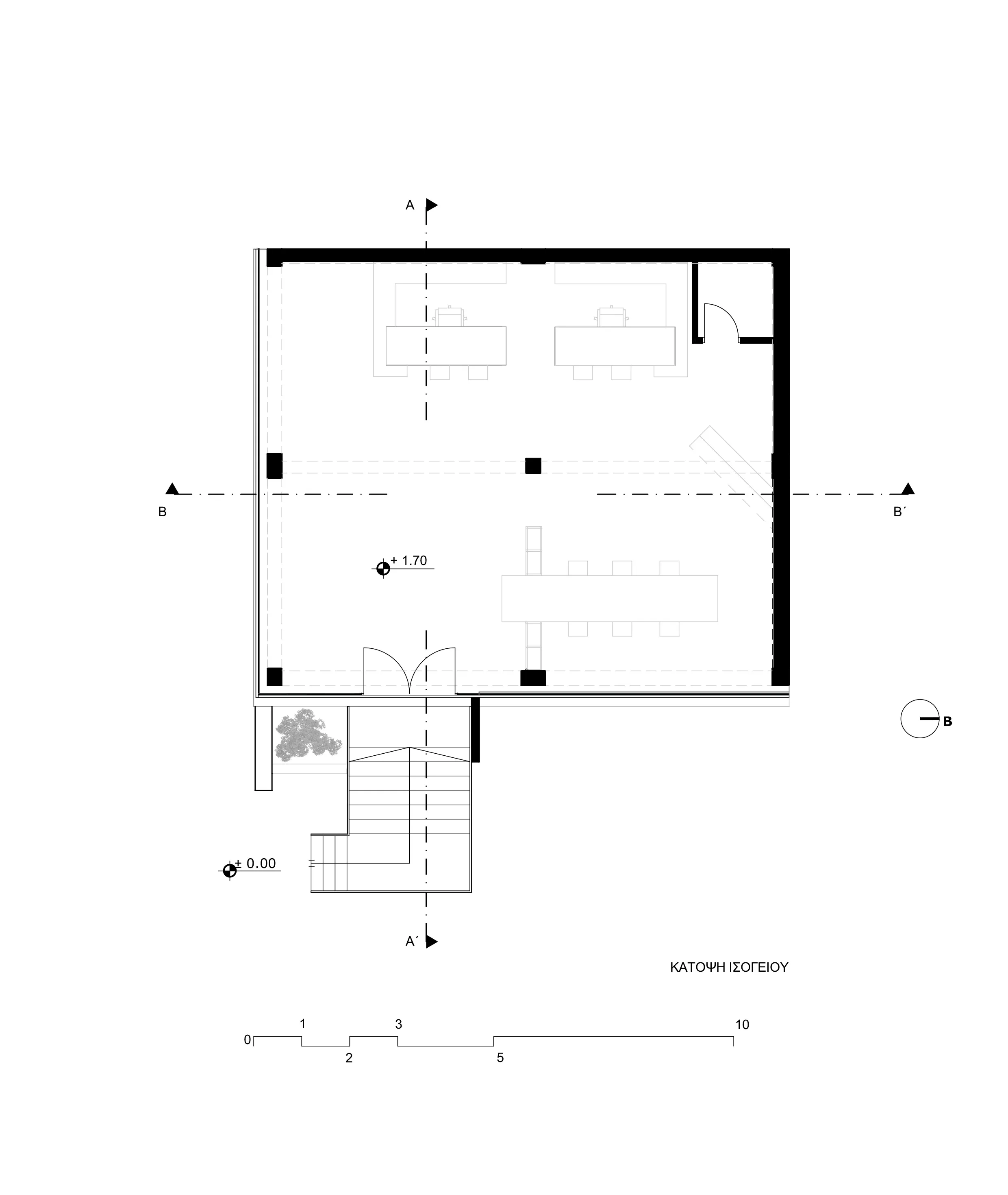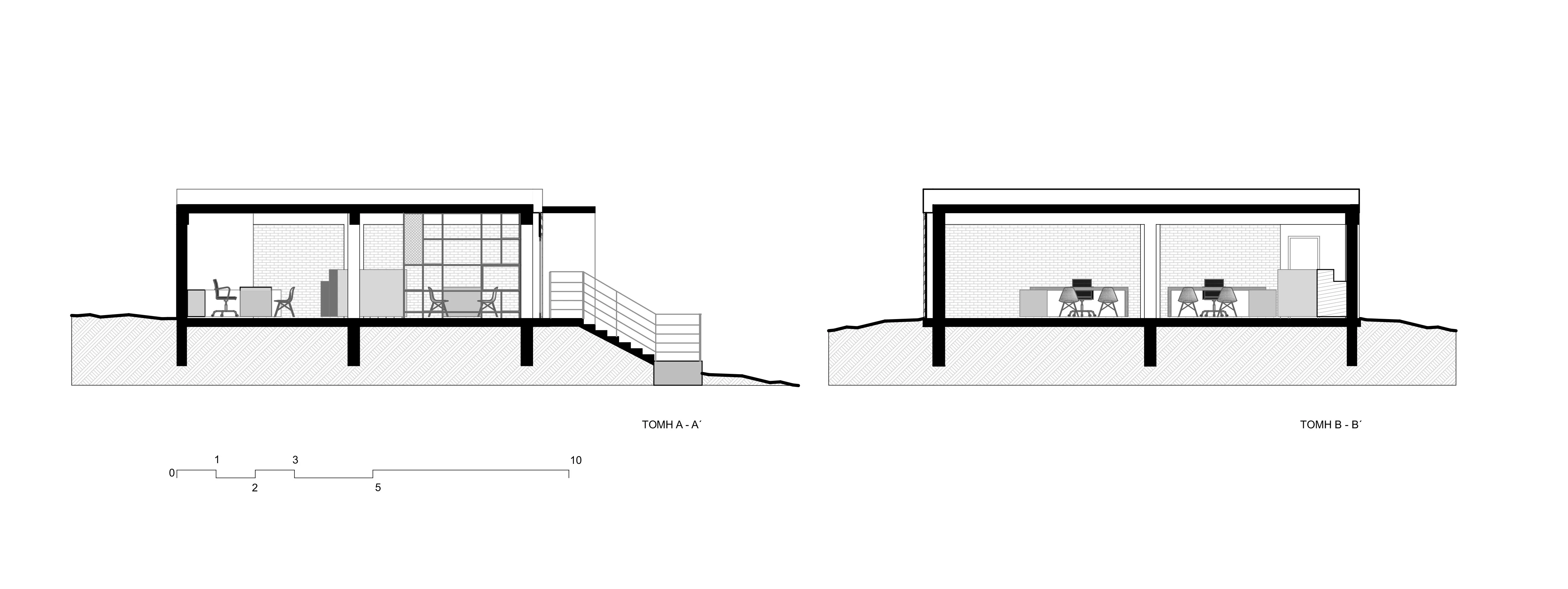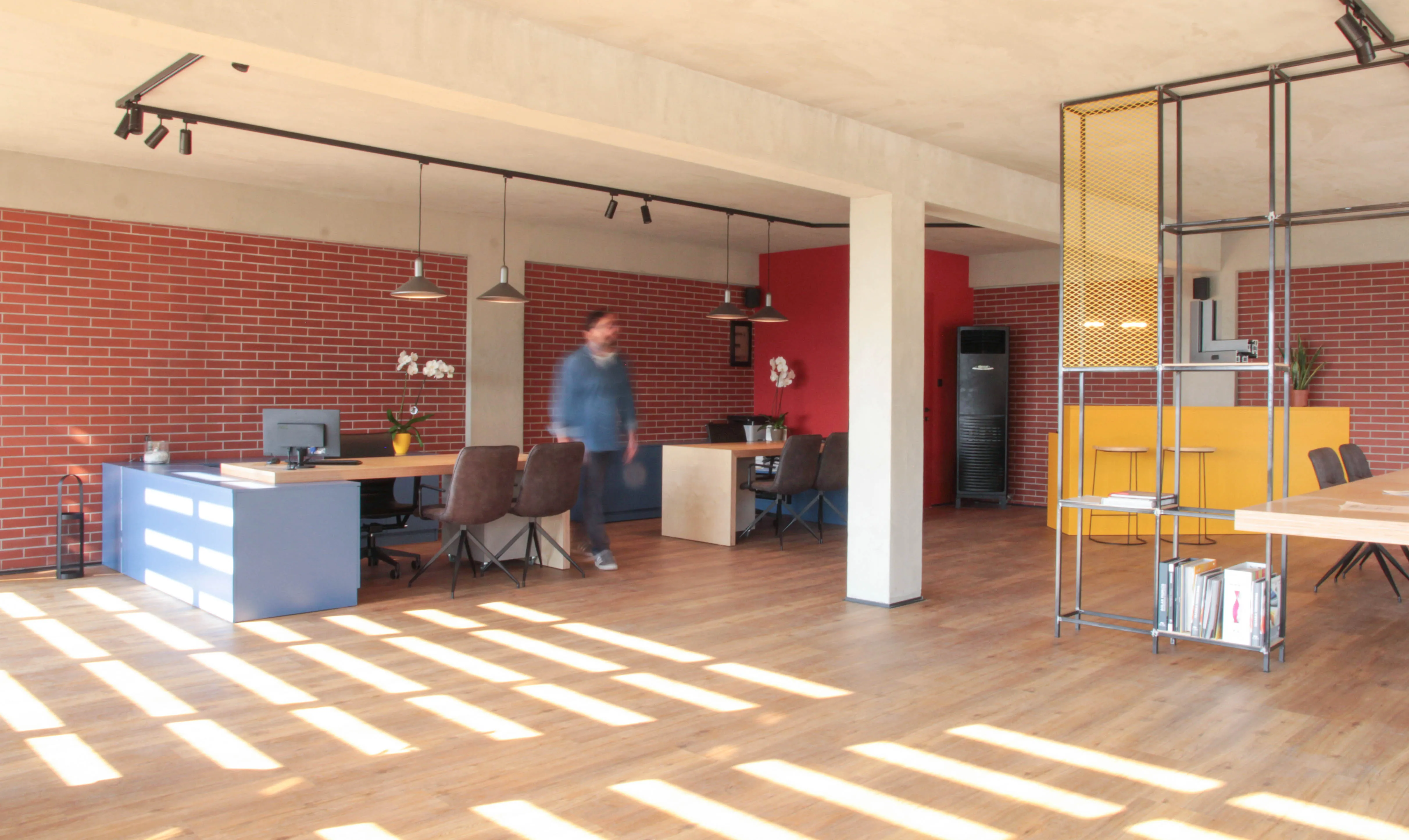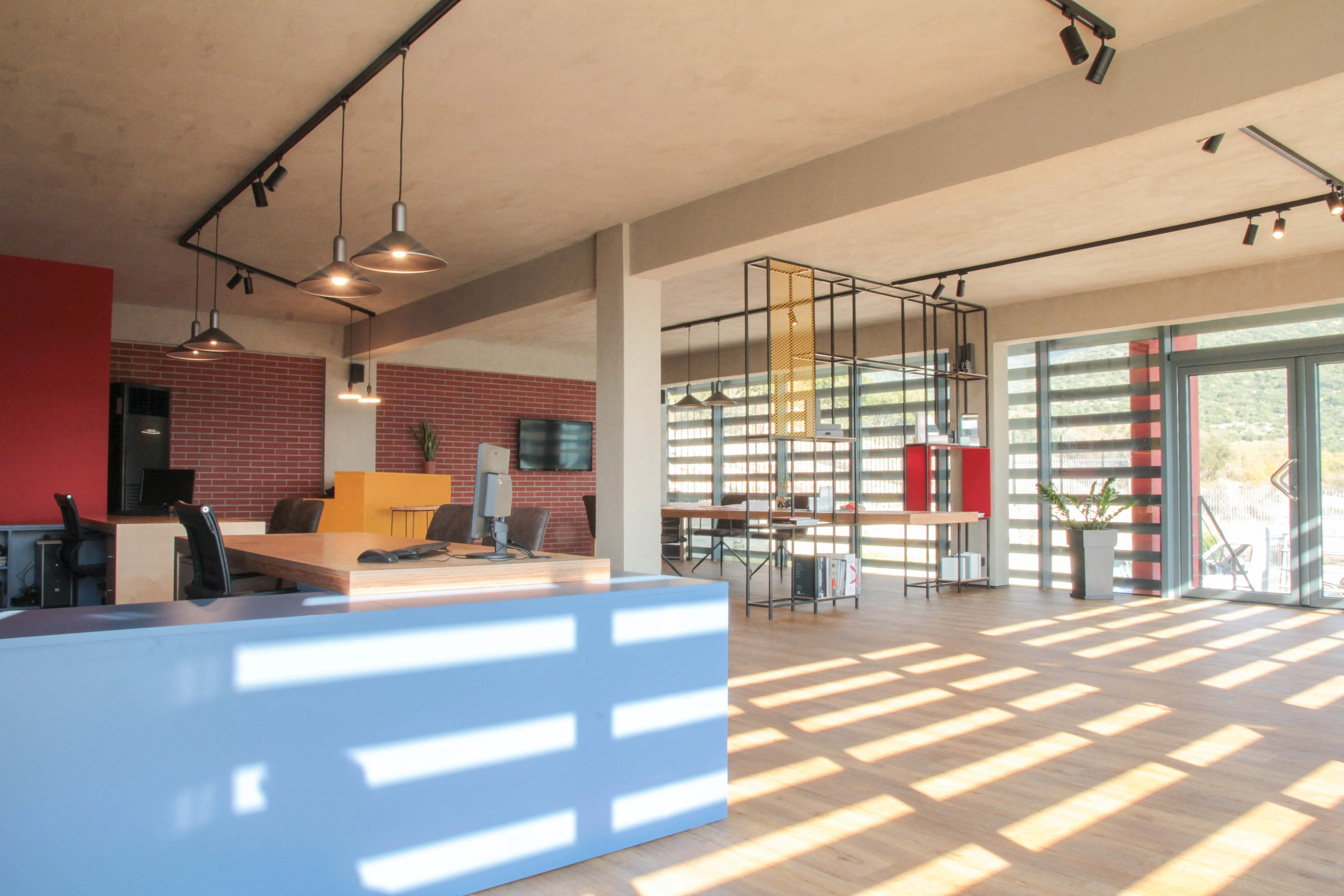 Το κέλυφος του κτηρίου, προϋπήρχε (σε διαφορετική μορφή) μαζί με ένα ακόμα βιοτεχνικό χώρο, και είναι εκτός του αστικού ιστού. Ως κεντρική ιδέα, αποτέλεσε το γεγονός της ενασχόλησης της εταιρείας με τις μεταλλικές κατασκευές, και συνεπώς ο βιομηχανικός σχεδιασμός του χώρου απόδωσε αυτό το κριτήριο. Στόχος και αφετηρία της κεντρικής ιδέας ήταν ο χώρος να αποπνέει την αίσθηση της δημιουργικότητας αλλά να εκφράζει και την ενασχόληση της εταιρείας με τα πρωτεύων υλικά π.χ. των μετάλλων. Είναι εμφανές η επιρροή των μοντερνιστικών χαράξεων, και μάλιστα του κινήματος de stijl, τα οποία αποδίδονται με σύγχρονο αλλά και διασκευασμένο τρόπο. Το εσωτερικό, οργανώθηκε με στόχο τους προσωπικούς χώρους εργασίας των ιδιοκτήτων, αλλά παράλληλα και ένα κεντρικό πυρήνα ως χώρος παρουσίασης – συλλογικής εργασίας και συζήτησης με τους επισκέπτες. Είναι εμφανής η αποκάλυψη του σκυροδετημένου φέρων οργανισμού, ο οποίος αποδίδεται με απλά και αδρά κονιάματα. Παράλληλα, στους τοίχους πλήρωσης προβάλλονται τα εμφανές τούβλα, ενώ επιπρόσθετα, το ακατέργαστο μέταλλο αποδίδει με αρτίστικο τρόπο την διάθεση της δημιουργικότητας. Τέλος, ως χαρακτηριστική πινελιά, είναι η φύτευση μιας ελιάς στην είσοδο, ως σύμβολο της ευημερίας και ευμάρειας, καθώς και στο υπόλοιπο τοπίο, υπάρχουν διάσπαρτες.