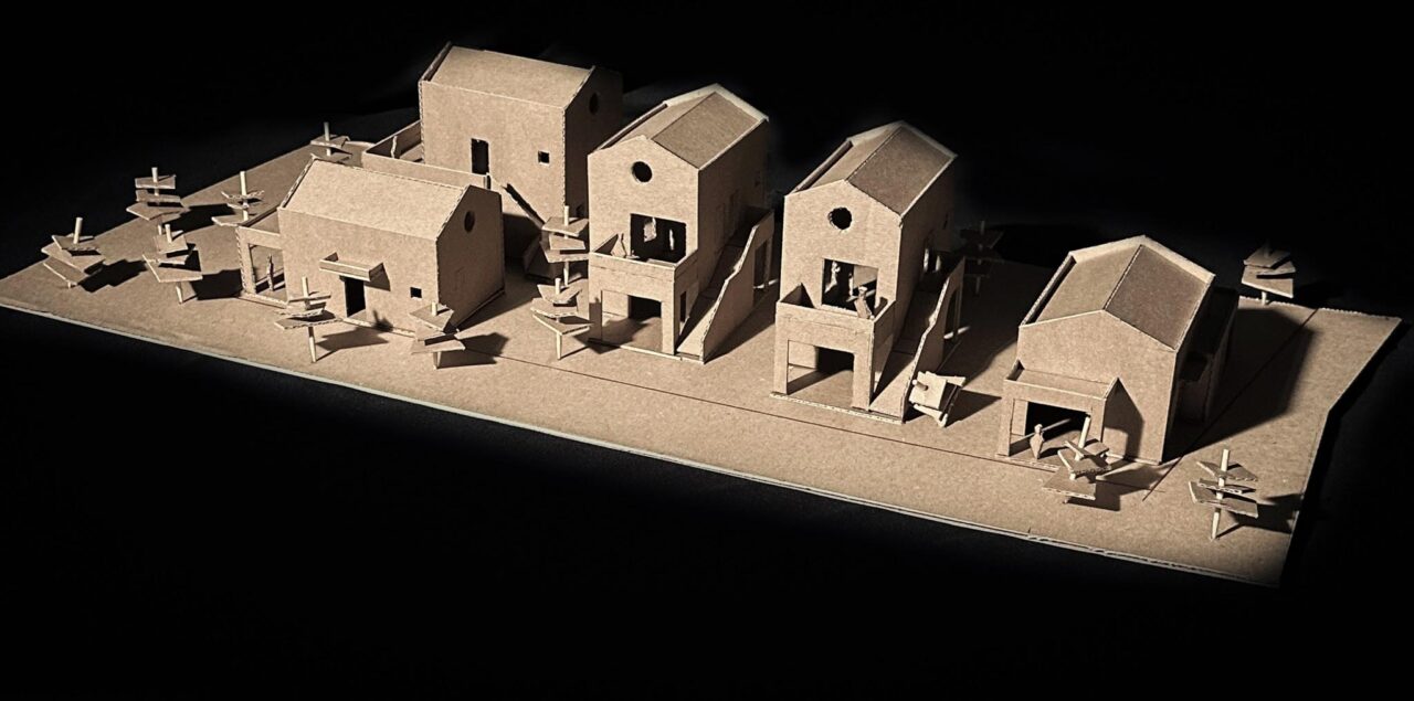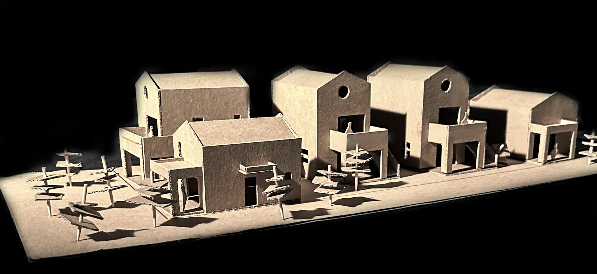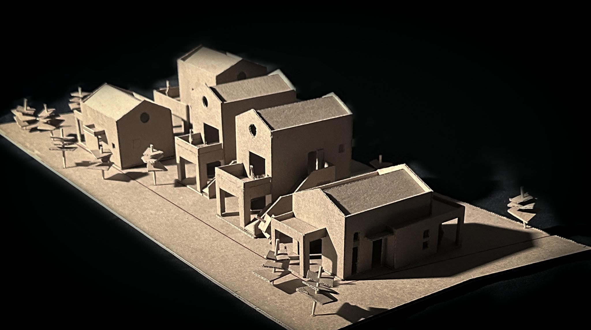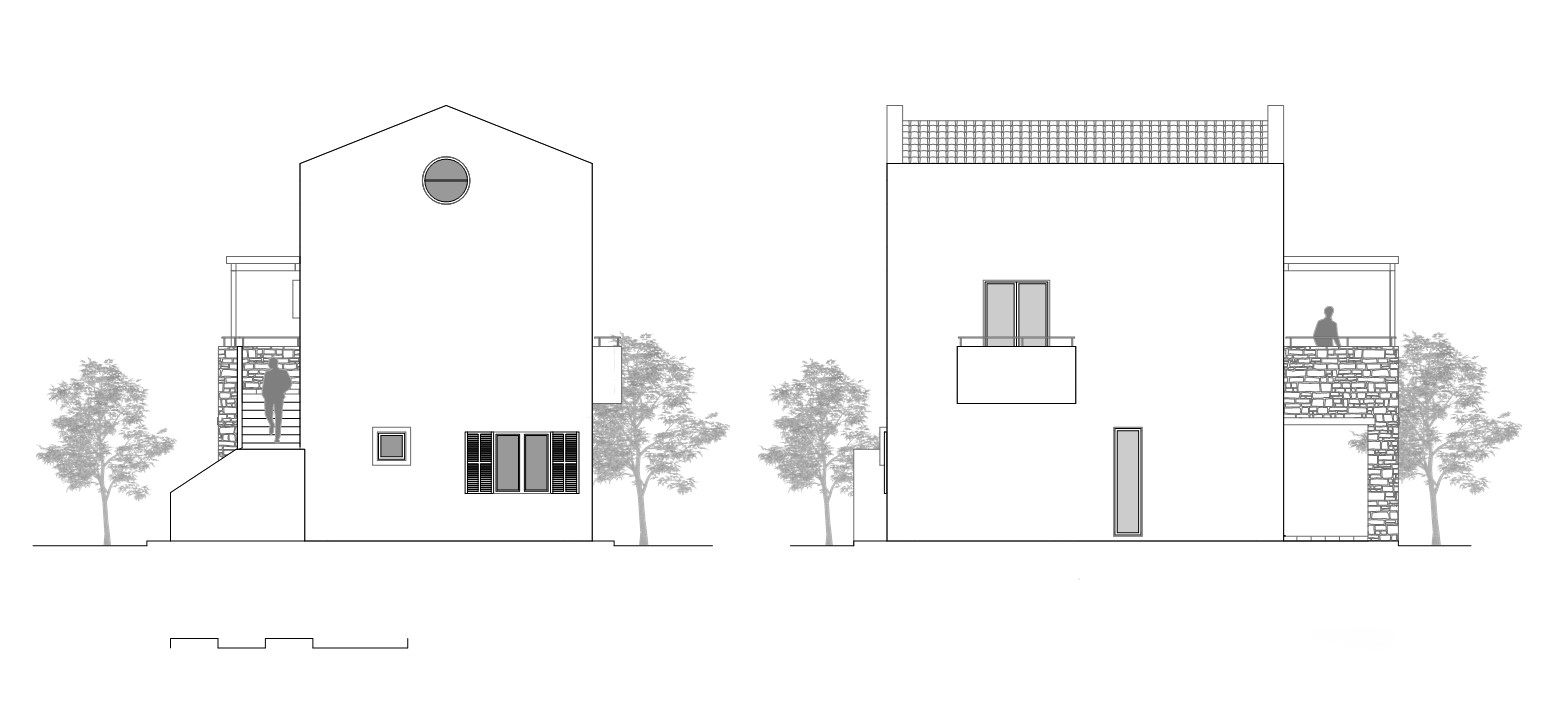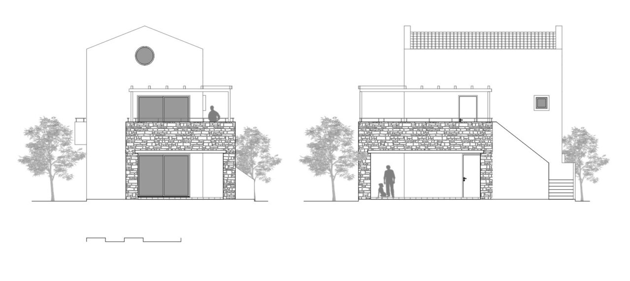 Το οικόπεδο, βρίσκεται στην σκάλα Ραχωνίου της Θάσου, και είναι εντός οικισμού. Είναι πολύ κοντά στη θάλασσα, και το πολύ σημαντικό και ενδιαφέρων στοιχείο, αποτελεί, η ύπαρξη πολλών αιωνόβιων ελαιόδεντρων. Ως εκ τούτου, κίνητρο αποτέλεσε το γεγονός, του σεβασμού και της διατήρησης των περισσοτέρων δέντρων. Όλες οι σχεδιαστικές χαράξεις οι οποίες πραγματοποιούνται, υποδηλώνουν τη κτηριακή ένταξη στο φυσικό υπόβαθρο, ενώ παράλληλα , μέρος της σύνθεσης αποτελούν τα ελαιόδεντρα. Παράλληλα, προδιαγράφονται αφηγηματικές διαδρομές σε όλους τους υπαίθριους χώρους των κατοικιών, έχοντας ως κύριο στόχο την ανθρώπινη ένταξη στο περιβάλλον. Οι κατοικίες, οργανώνονται σε δυο επίπεδα, τα ισόγεια και οι όροφοι οι οποίοι συνδέονται με εξωτερικά κλιμακοστάσια. Τα υλικά τα οποία χρησιμοποιούνται, είναι, οι τοπικές πέτρες , τα φυσικά επιχρίσματα, καθώς και η terracotta την οποία την συναντάμε στα δάπεδα (προέκταση χωμάτινου υπεδάφους) καθώς και στα κεραμιδιά των στεγών.