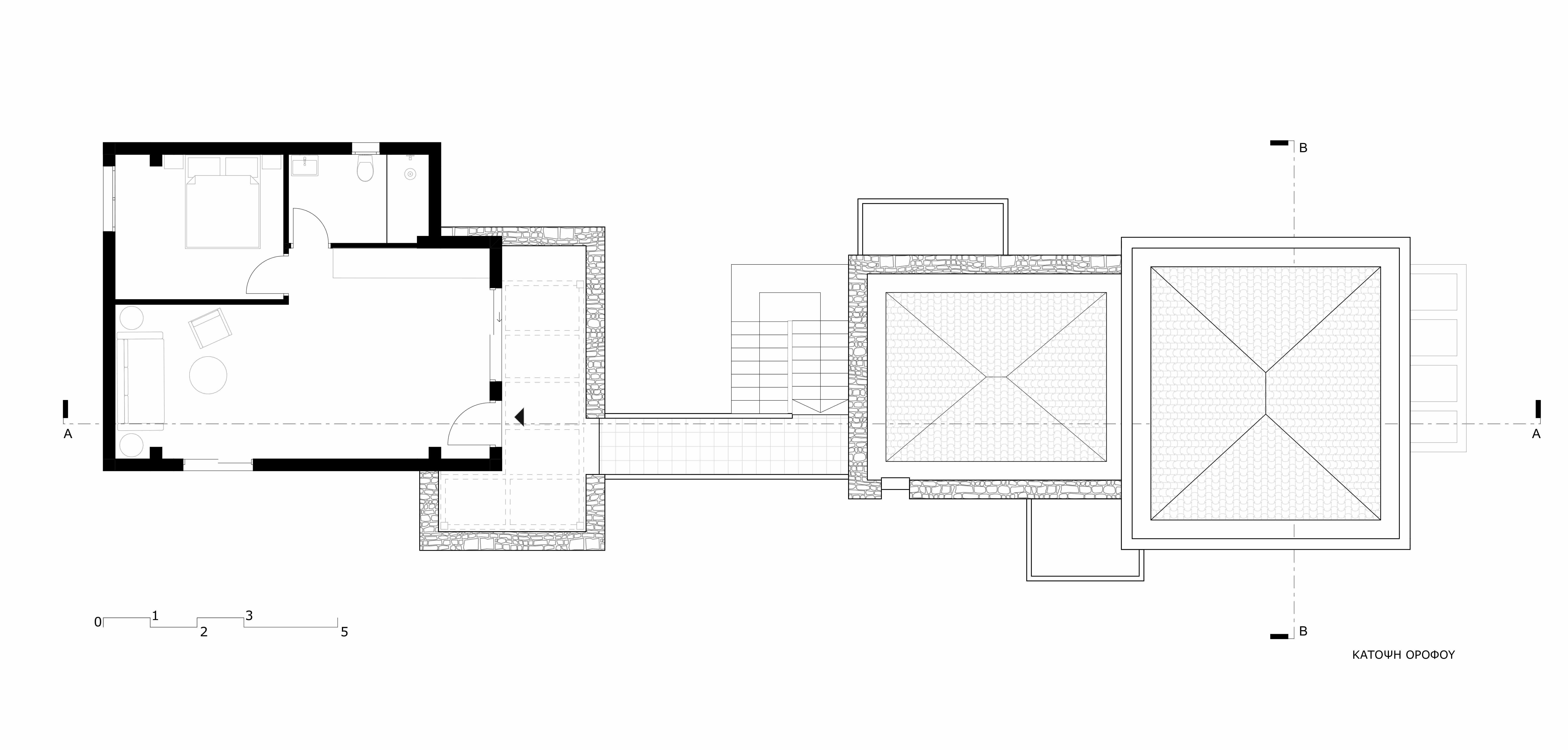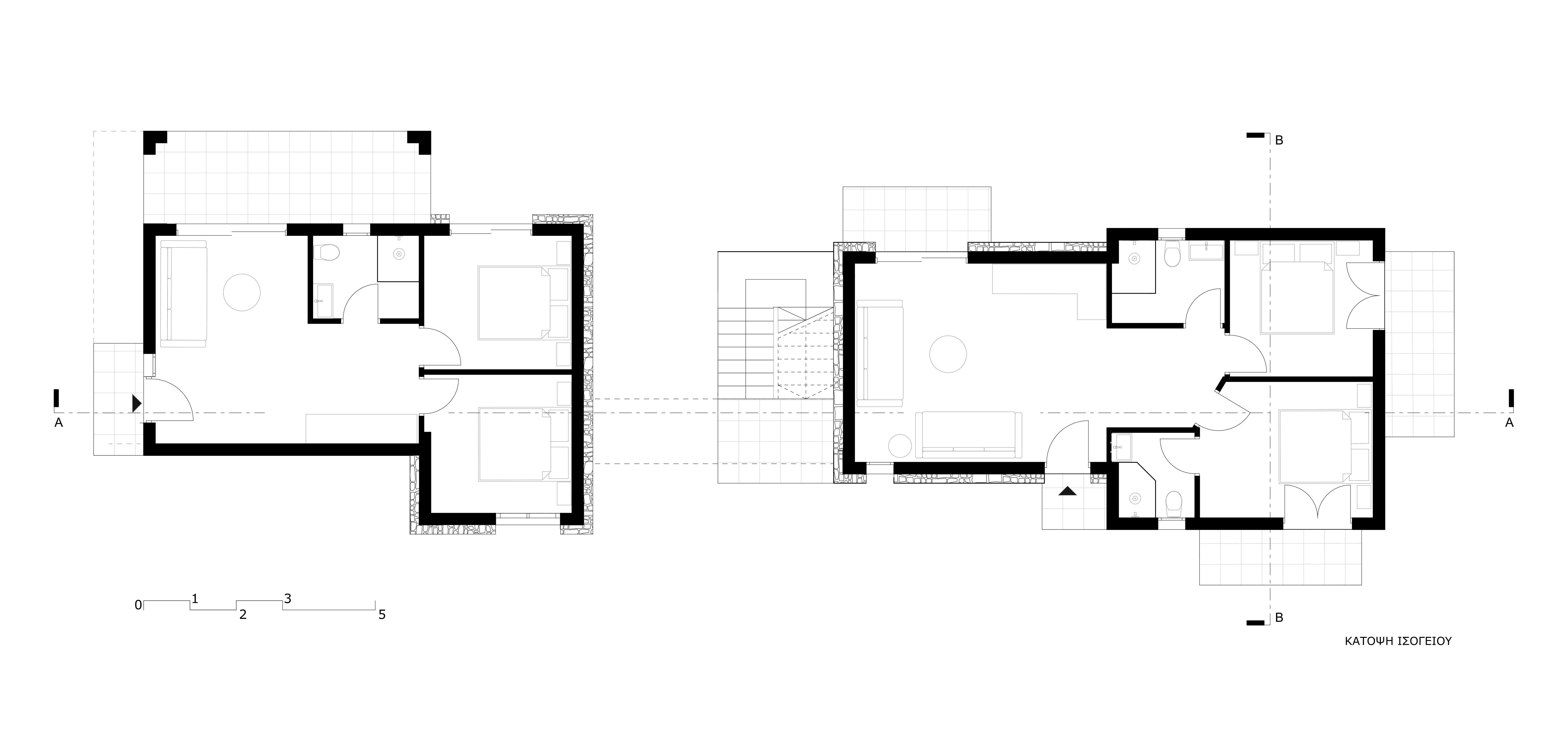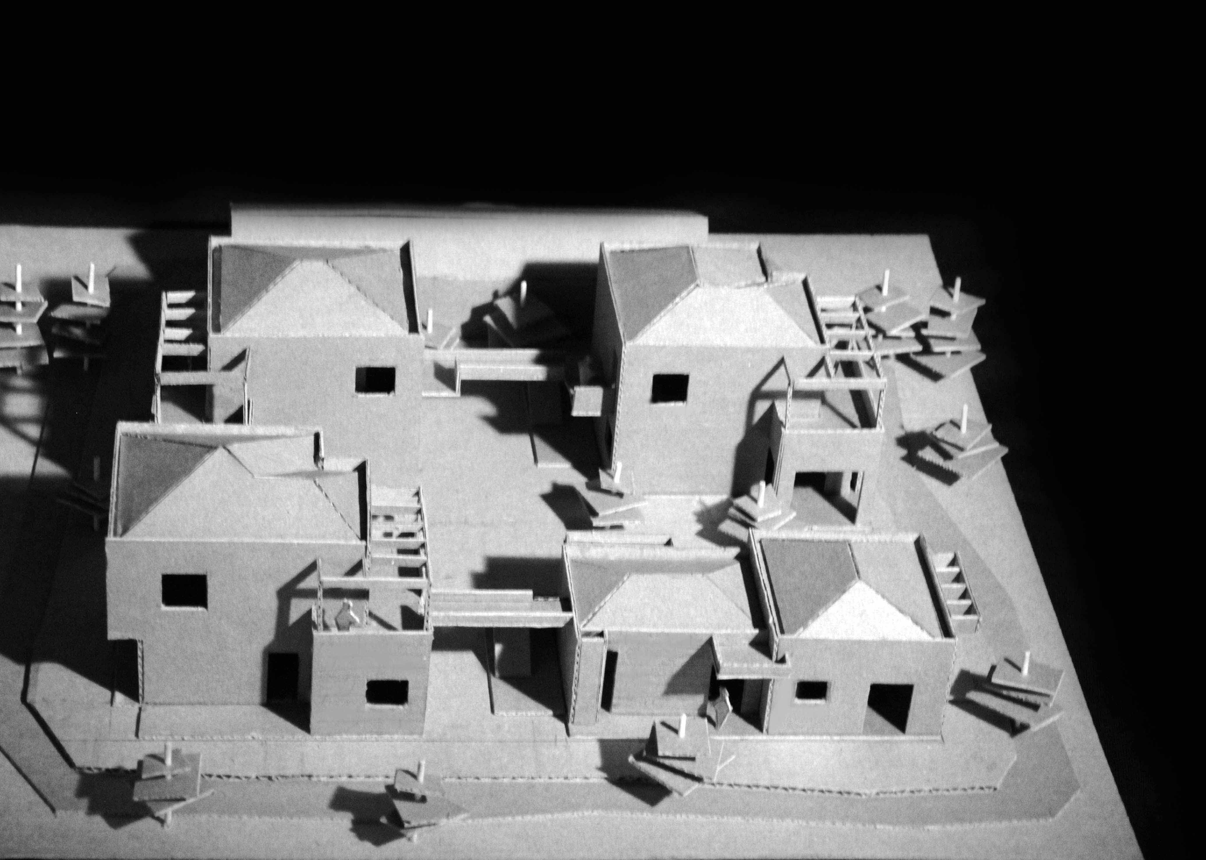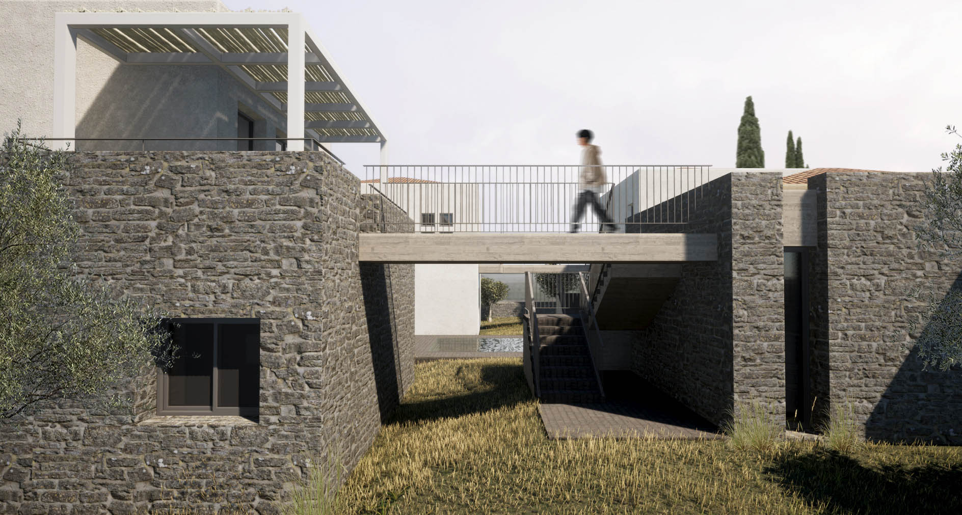 Εμφανής είναι ο κεντρικός πυρήνας (υδάτινο στοιχείο) οργάνωσης των οικιών, ο οποίος περικλείεται από τους χώρους διημέρευσης των διαμενόντων. Οι κατοικίες, οργανώνονται σε δυο επίπεδα, των ισόγειων διαμερισμάτων καθώς και των ορόφων. Στο ανώτερο επίπεδο, δημιουργούνται άπλετοι εξώστες χαλάρωσης και οπτικής θέασης του φυσικού τοπίου. Τα υλικά τα οποία χρησιμοποιούνται (τοπικά πετρώματα), προδιαγράφουν την Ελληνικότητα και την λαϊκή παραδοσιακή αρχιτεκτονική, η οποία αποδίδεται με σύγχρονα στοιχεία του μοντερνισμού.