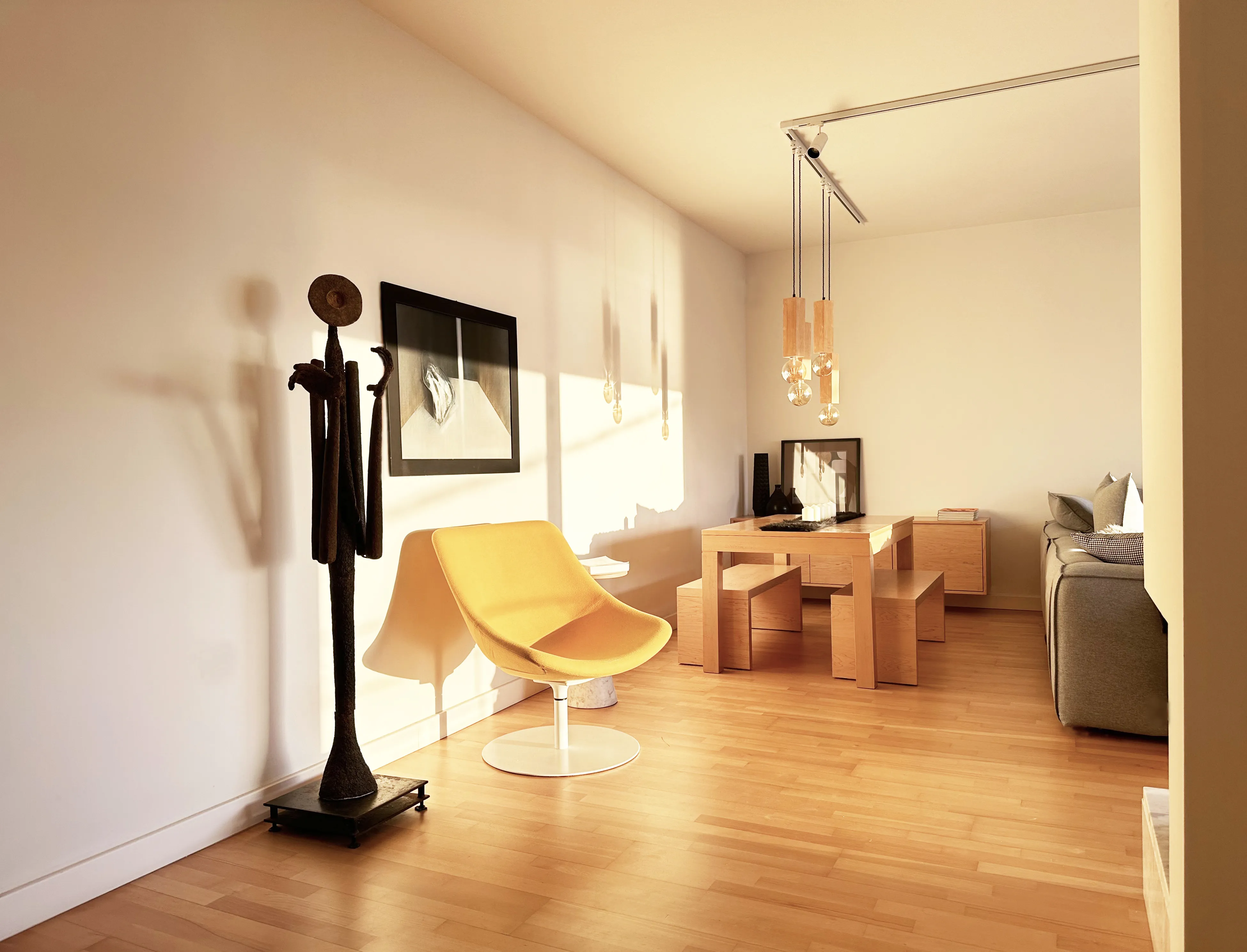 Τα μεγάλα ανοίγματα συμβάλλουν στην σύνδεση του εσωτερικού με τον εξωτερικό χώρο, ενώ παράλληλα, η εισαγωγή του φυσικού φωτισμού επιτυγχάνεται ανεμπόδιστα. Αποτελεί μια συμβατική κατασκευή , και τα υλικά τα οποία χρησιμοποιήθηκαν στις εξωτερικές επιφάνειες είναι επιχρίσματα με αδρές επιφάνειες καθώς και τα μεταλλικά στοιχεία στα κιγκλιδώματα. Στους εσωτερικούς χώρους κυριαρχεί το ξύλο σφενδάμου, σε συνδυασμό με το υπόλευκο χρώμα.