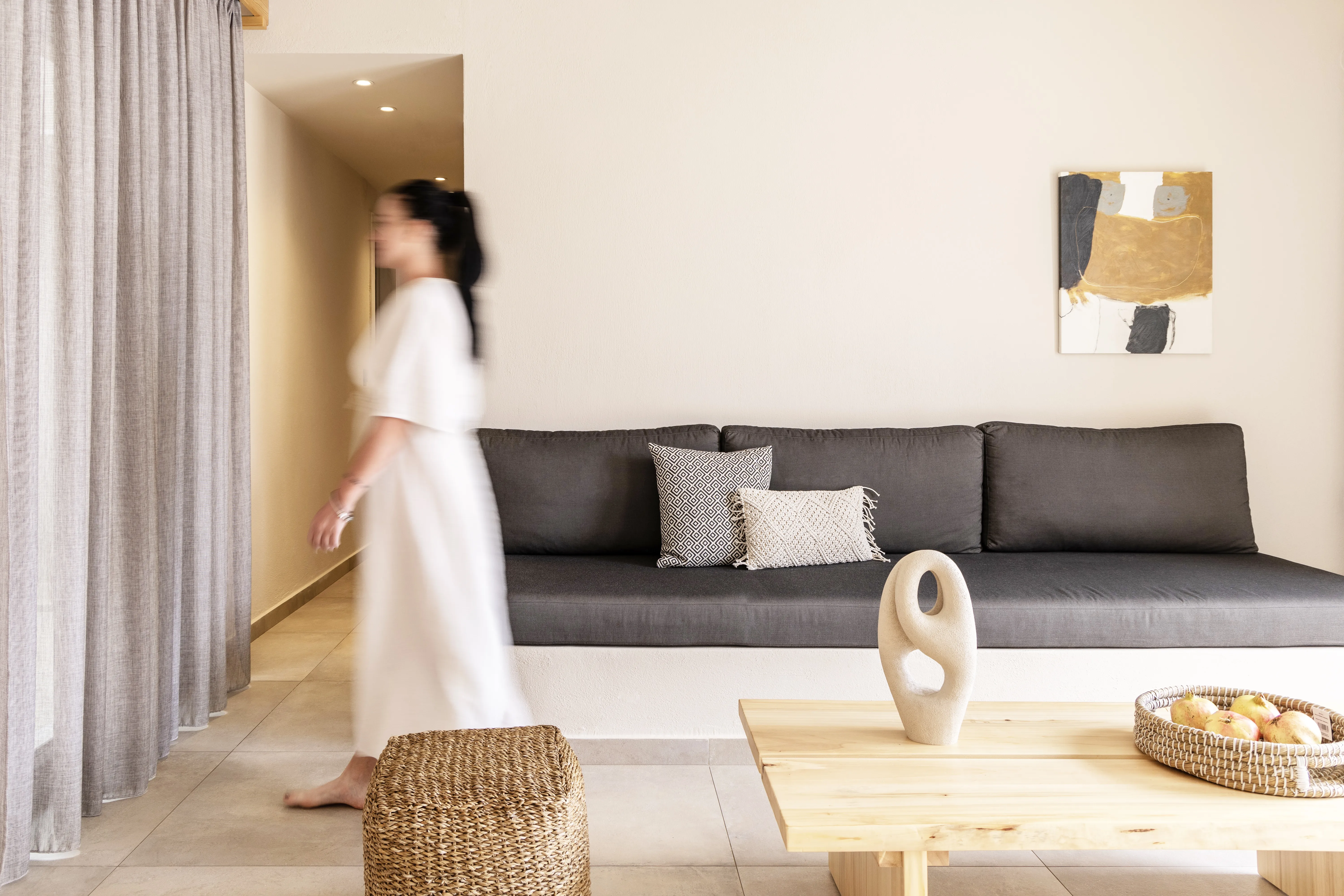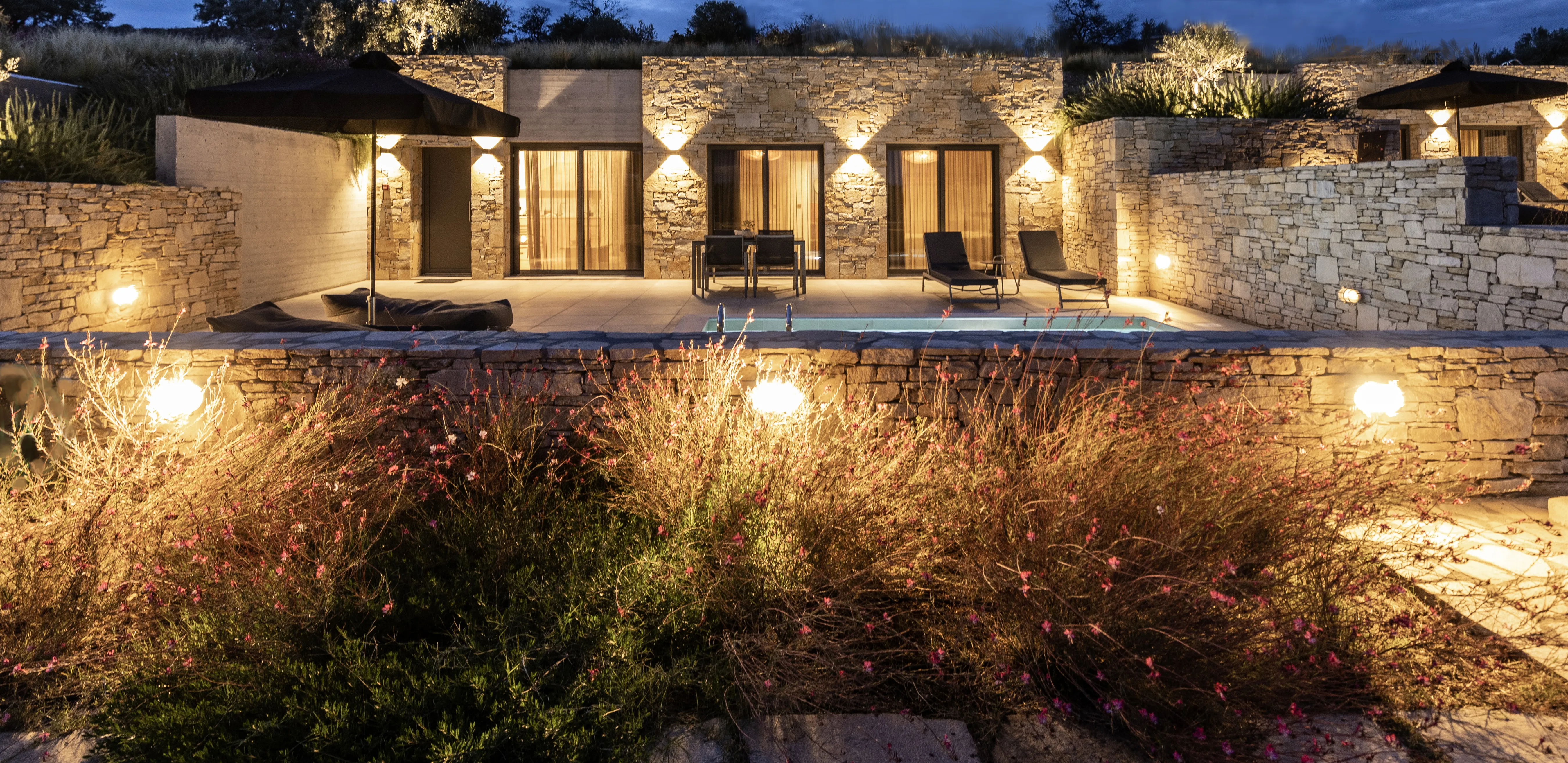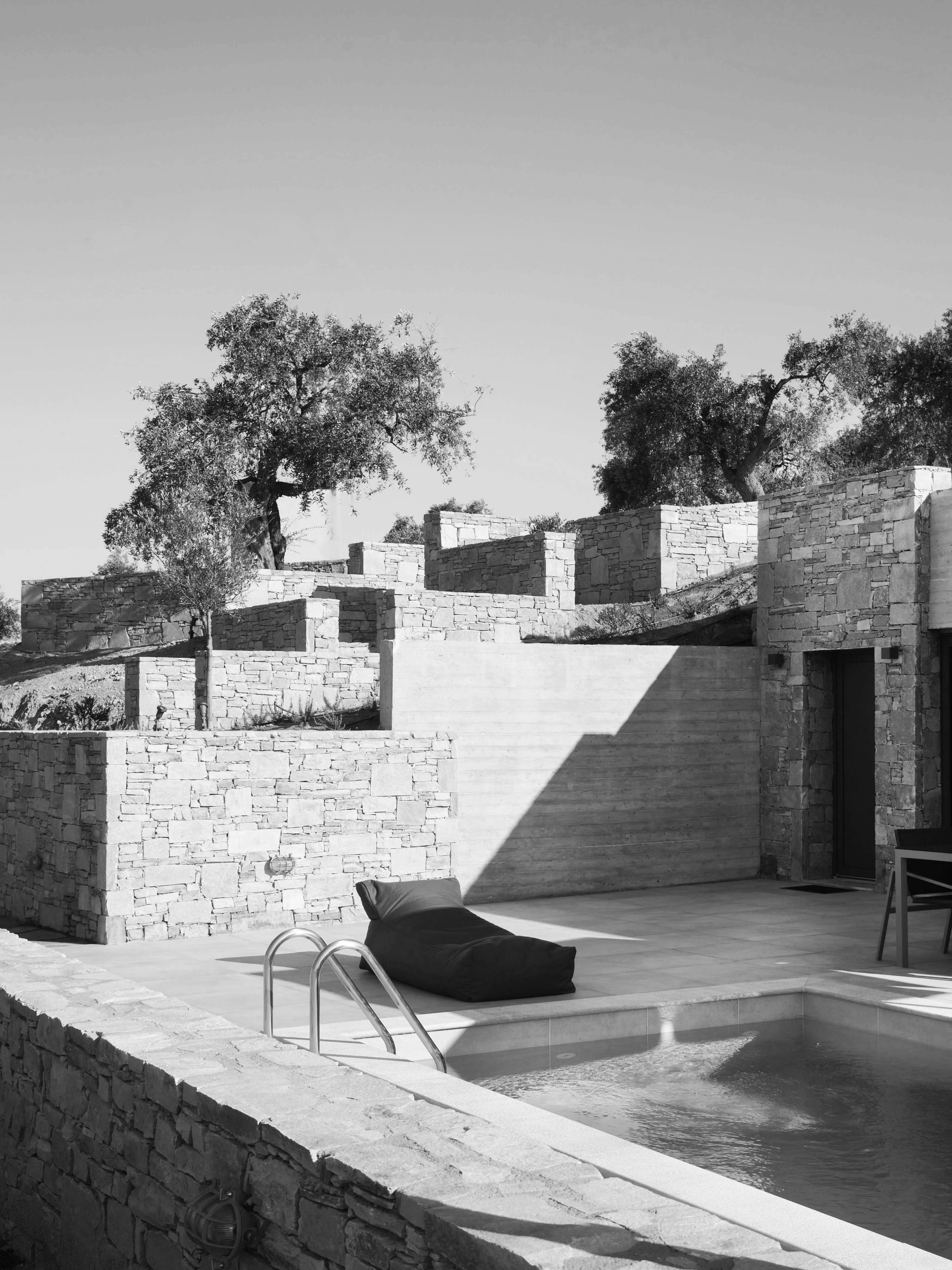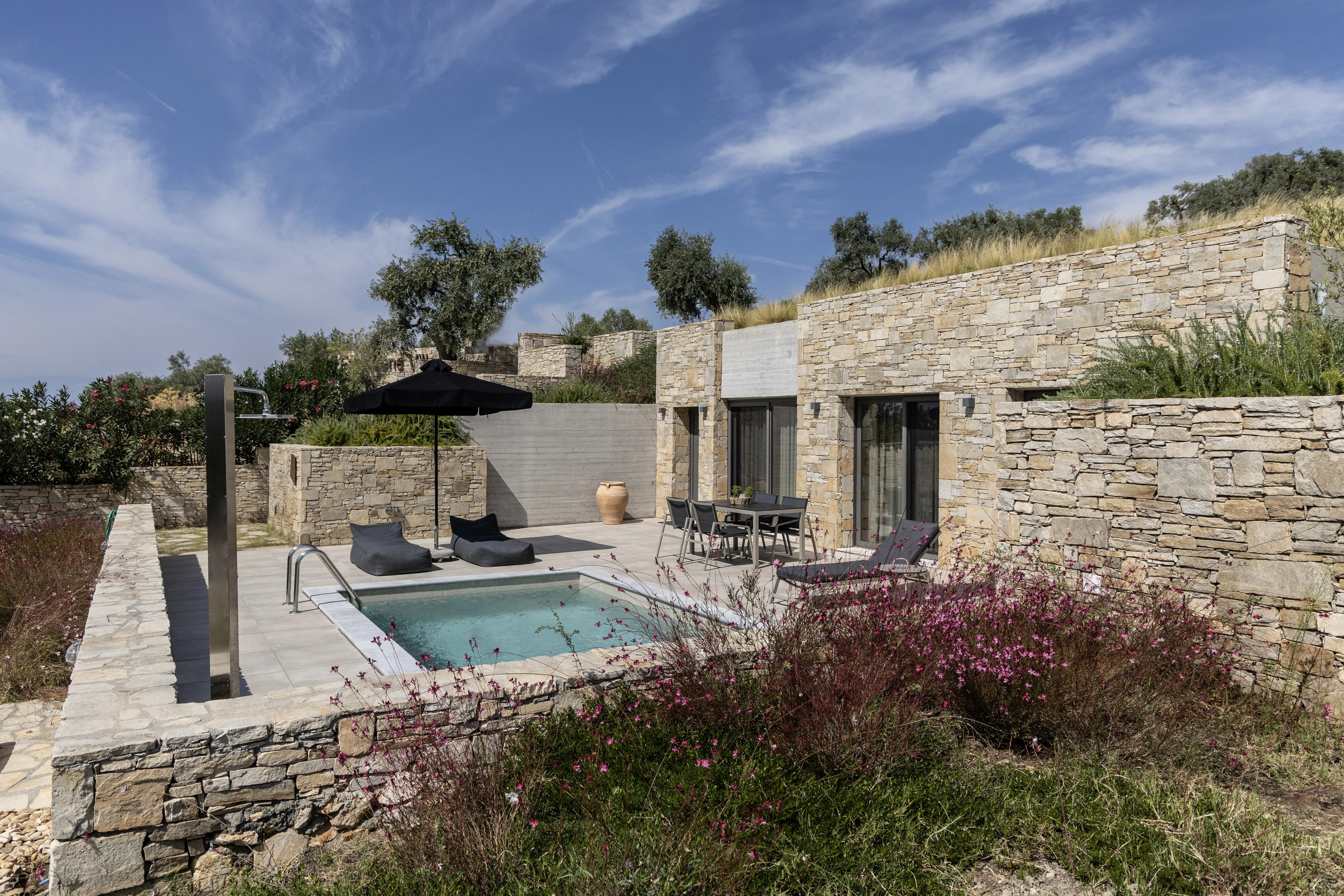 Συμμετέχοντας στον σχεδιασμό του περιβάλλοντα χώρου καθώς και των εσωτερικών χώρων, η κύρια πρόθεση ήταν η ένταξη του κτηριακού συνόλου στο υπόβαθρο της περιοχής, τα πετρώματα τα οποία χρησιμοποιήθηκαν είναι της ευρύτερης περιοχής και χρησιμοποιήθηκαν με την τεχνική της ξερολιθιάς. Οι εσωτερικοί χώροι , ενοποιούνται με τους εξωτερικούς καθώς εντάσσουν την φυσικότητα των υλικών.