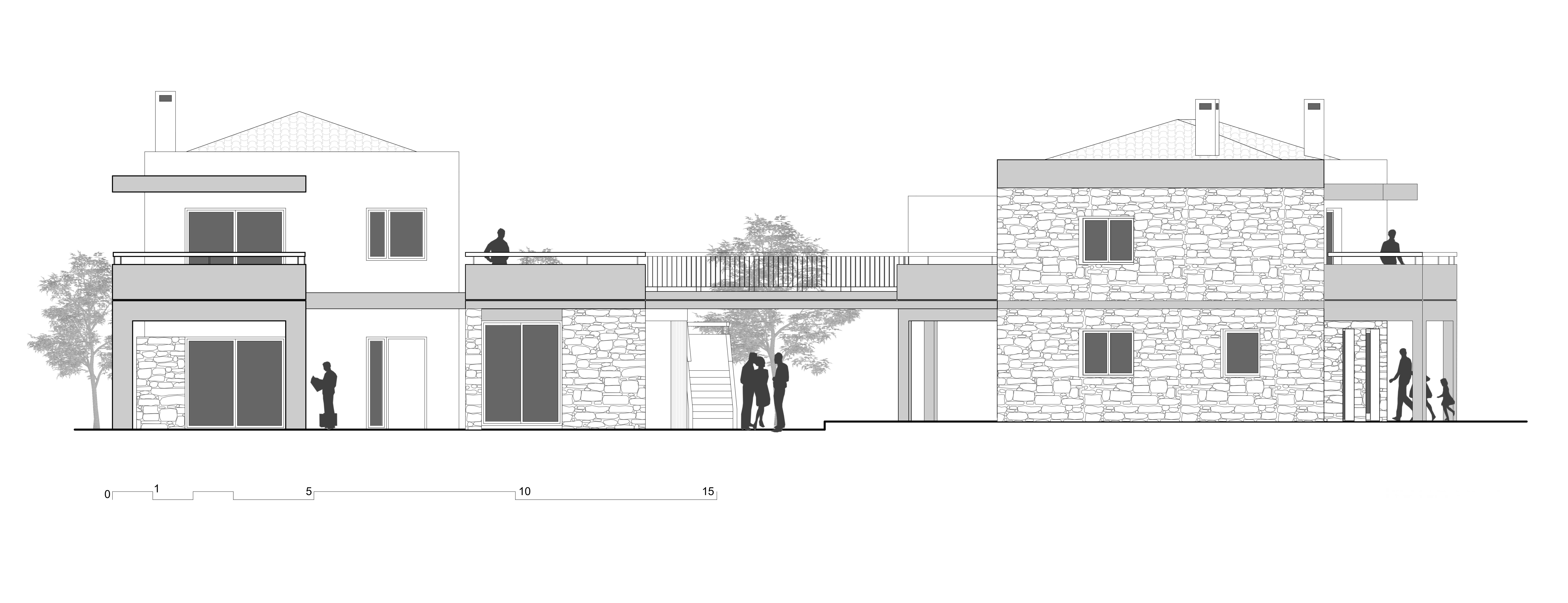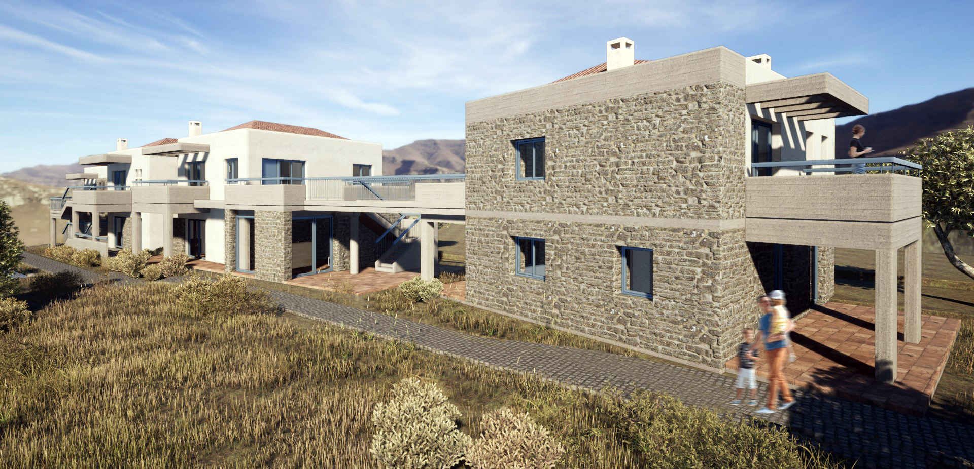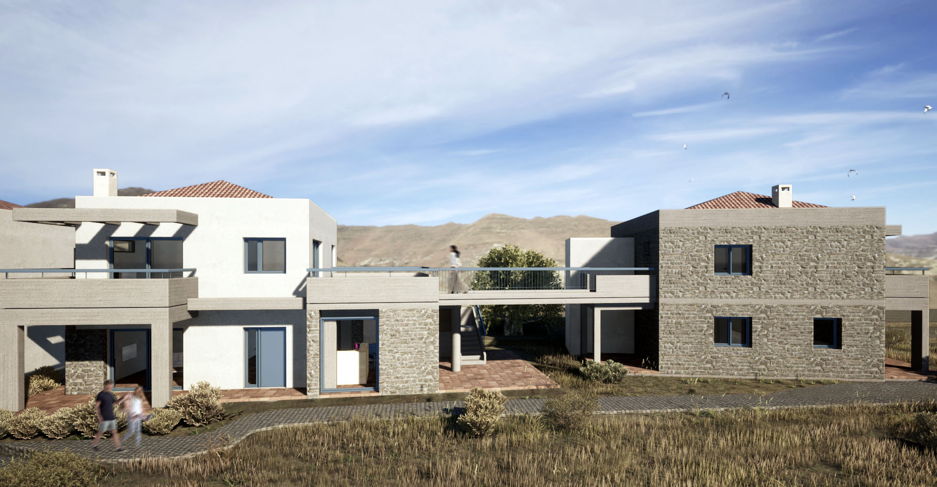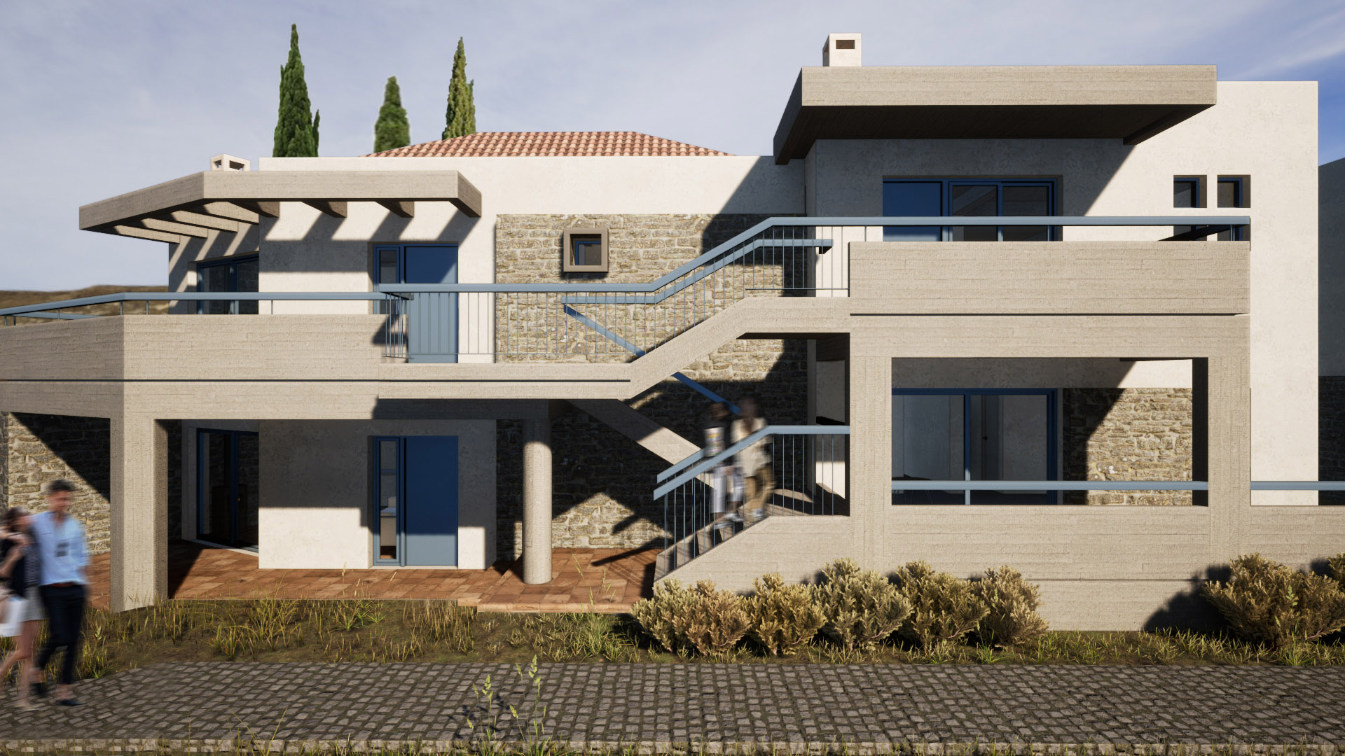 Το οικόπεδο βρίσκεται εντός οικισμού στον Άγιο Αντρέα και έχει μικρές υψομετρικές διακυμάνσεις, επιπρόσθετά, είναι διαμπερές και στενόμακρο, στοιχείο το οποίο αποτέλεσε την κεντρική συνθετική ιδέα και ως ετούτου σχεδιάστηκε ένα μονοπάτι περιπάτου, το οποίο διαπερνά το οικόπεδο ως αεράκι. Παράλληλα στο οικόπεδο, υφίστανται κτίσματα, μιας αποθήκης, μιας πέτρινης κατοικίας και ένας ξυλόφουρνος, τα οποία διατηρούνται και ανακατασκευάζονται συνδεόμενα με μια σκυροδετημένη γέφυρα. Η παραδοσιακή λαϊκή αρχιτεκτονική συναντάτε στα κτίσματα, τα οποία αποδίδονται με σύγχρονα στοιχεία του μοντερνισμού. Σε αυτό, συμβάλει η χρήση του εμφανούς σκυροδέματος το οποίο συνυπάρχει με την τοπική πέτρα του Παγγαίου. Οι όροφοι, οργανώνονται σε δυο επίπεδα και έχουν νοτιοδυτικό προσανατολισμό.