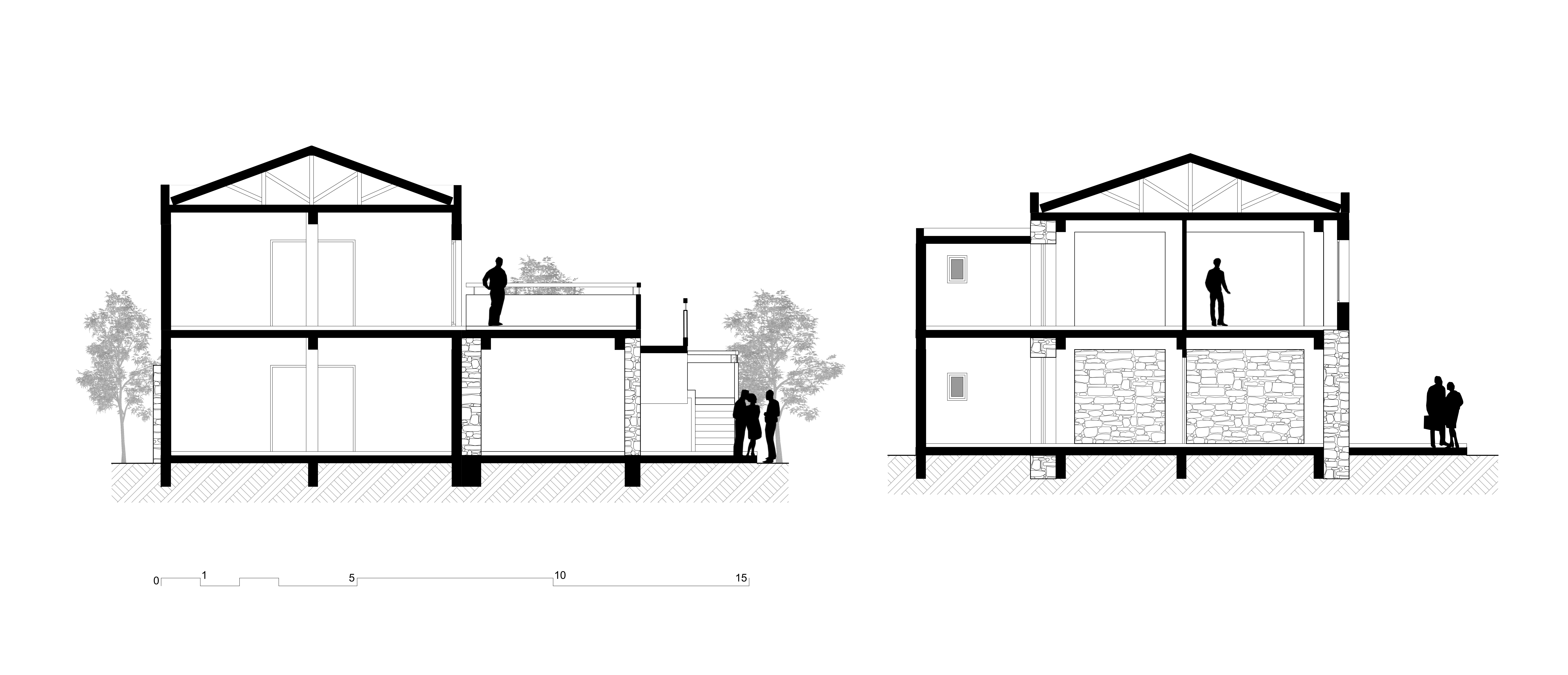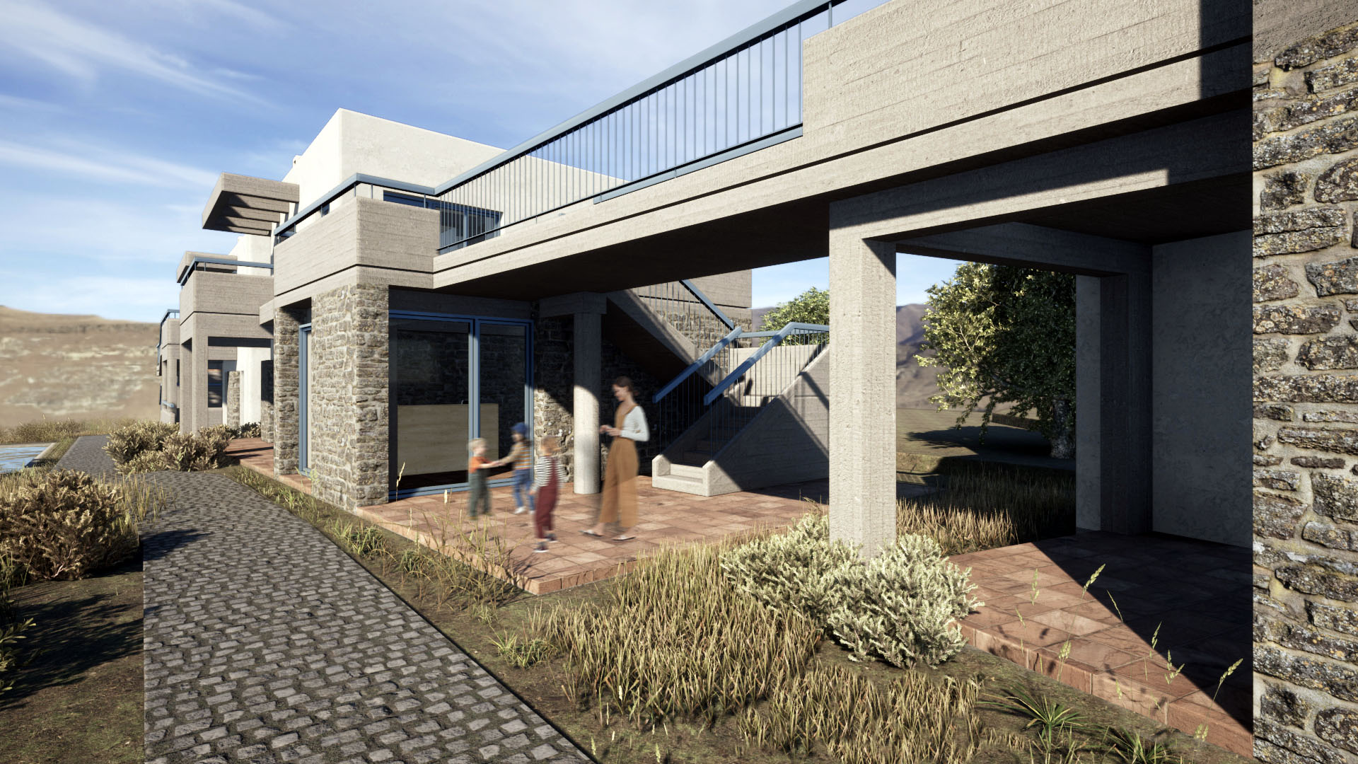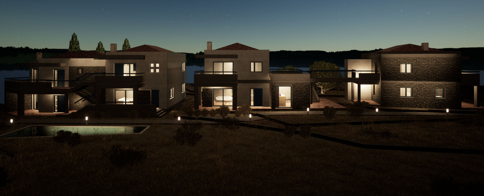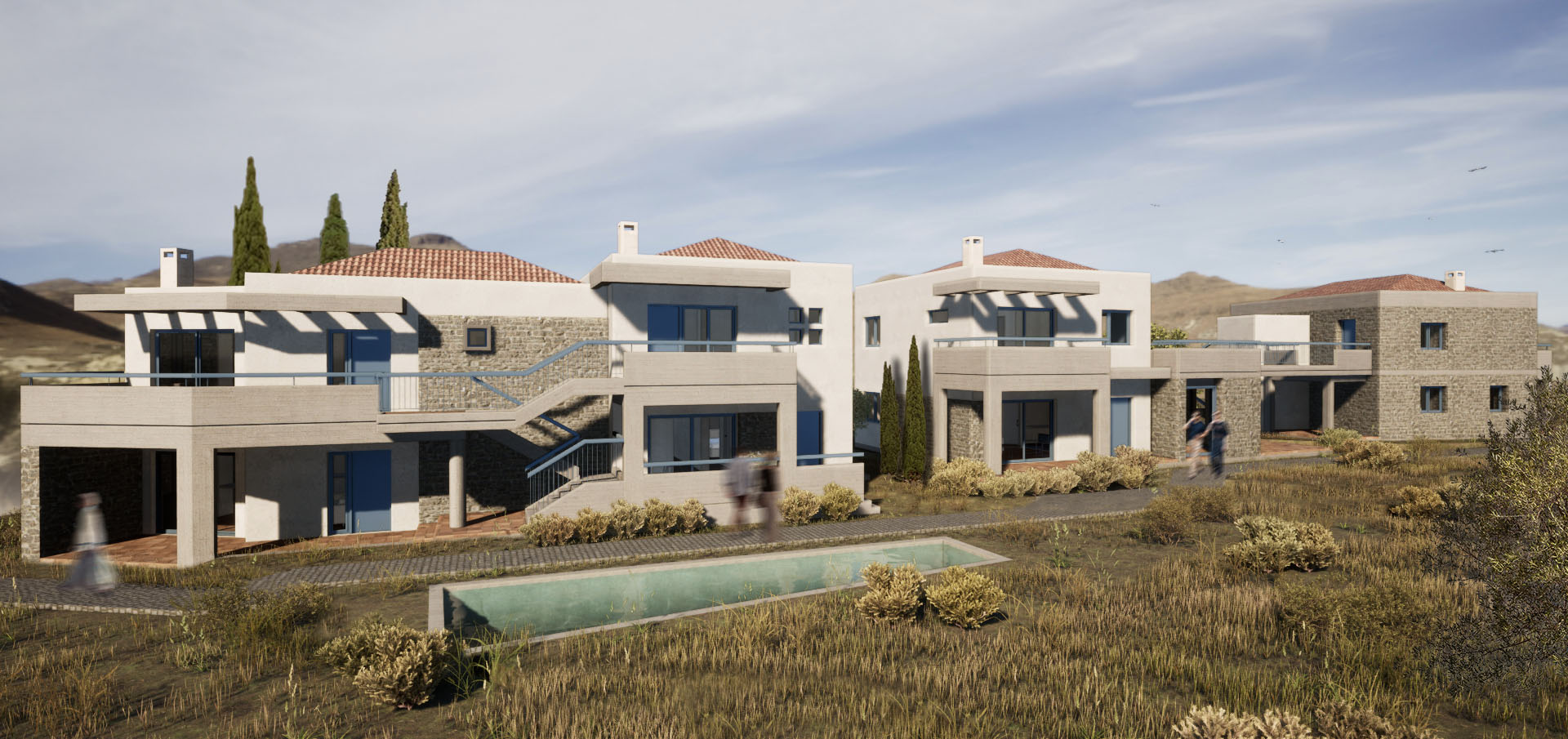 Το οικόπεδο βρίσκεται εντός οικισμού στον Άγιο Αντρέα και έχει μικρές υψομετρικές διακυμάνσεις, επιπρόσθετά, είναι διαμπερές και στενόμακρο, στοιχείο το οποίο αποτέλεσε την κεντρική συνθετική ιδέα και ως ετούτου σχεδιάστηκε ένα μονοπάτι περιπάτου, το οποίο διαπερνά το οικόπεδο ως αεράκι. Παράλληλα στο οικόπεδο, υφίστανται κτίσματα, μιας αποθήκης, μιας πέτρινης κατοικίας και ένας ξυλόφουρνος, τα οποία διατηρούνται και ανακατασκευάζονται συνδεόμενα με μια σκυροδετημένη γέφυρα. Η παραδοσιακή λαϊκή αρχιτεκτονική συναντάτε στα κτίσματα, τα οποία αποδίδονται με σύγχρονα στοιχεία του μοντερνισμού. Σε αυτό, συμβάλει η χρήση του εμφανούς σκυροδέματος το οποίο συνυπάρχει με την τοπική πέτρα του Παγγαίου. Οι όροφοι, οργανώνονται σε δυο επίπεδα και έχουν νοτιοδυτικό προσανατολισμό.