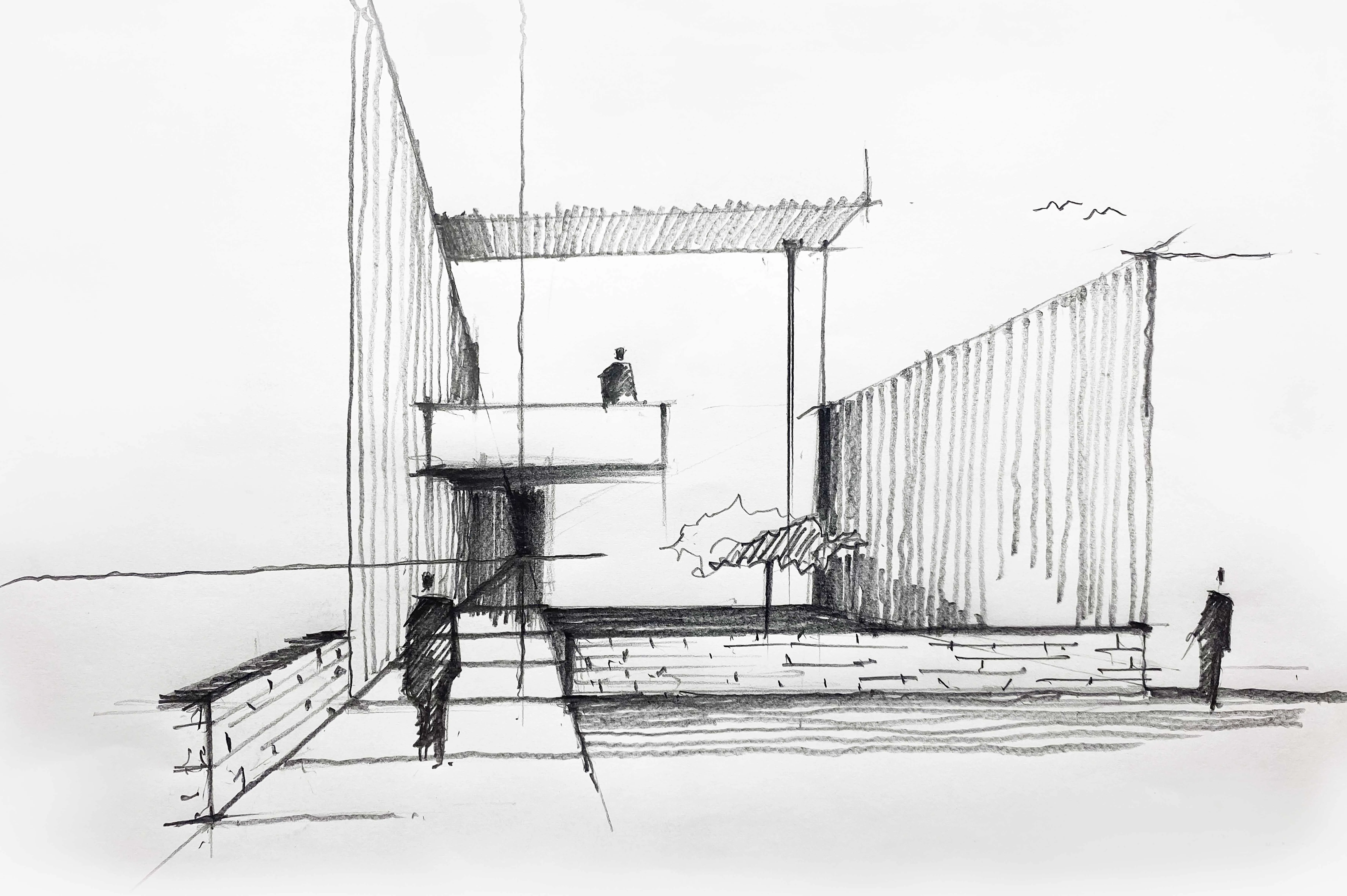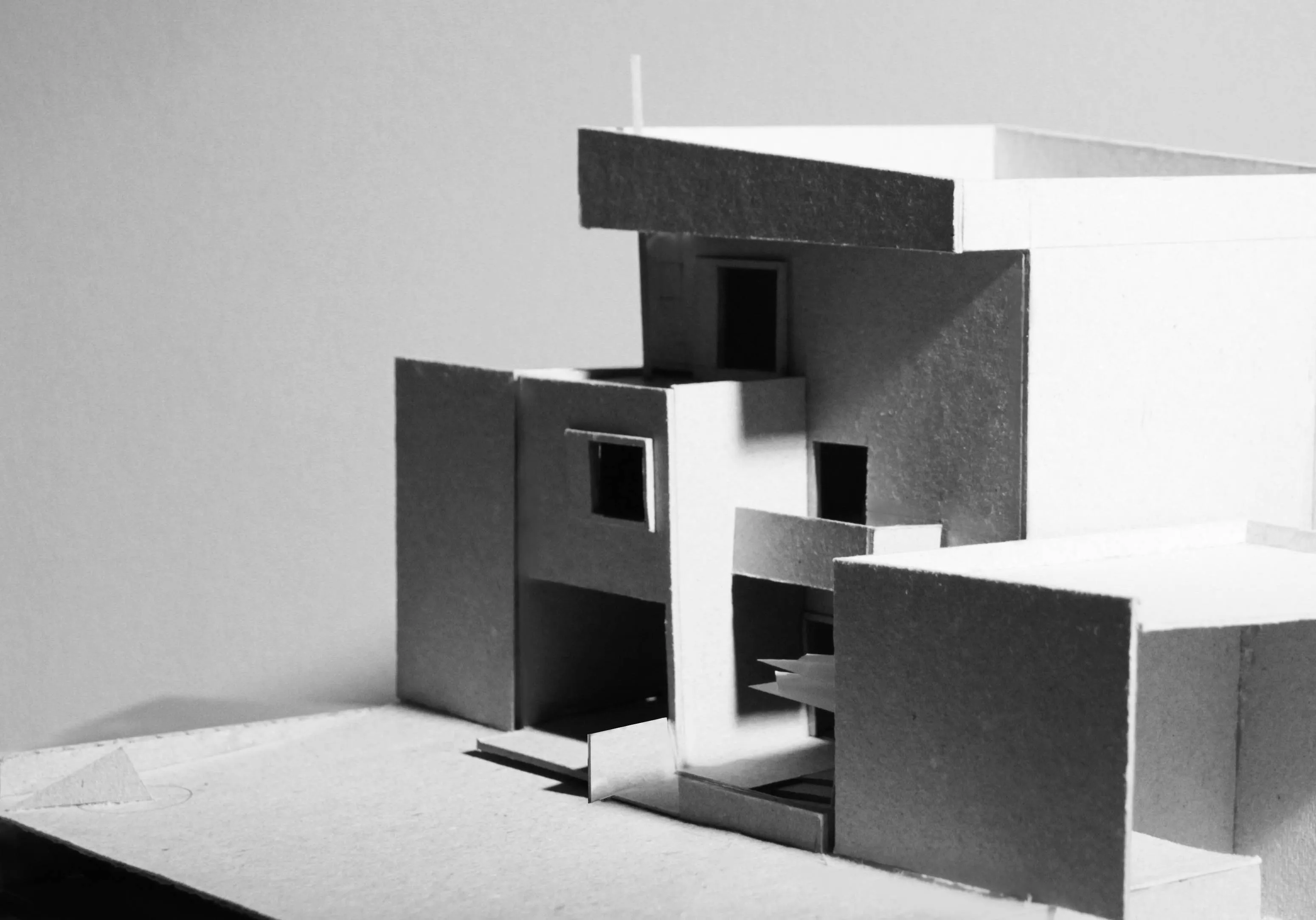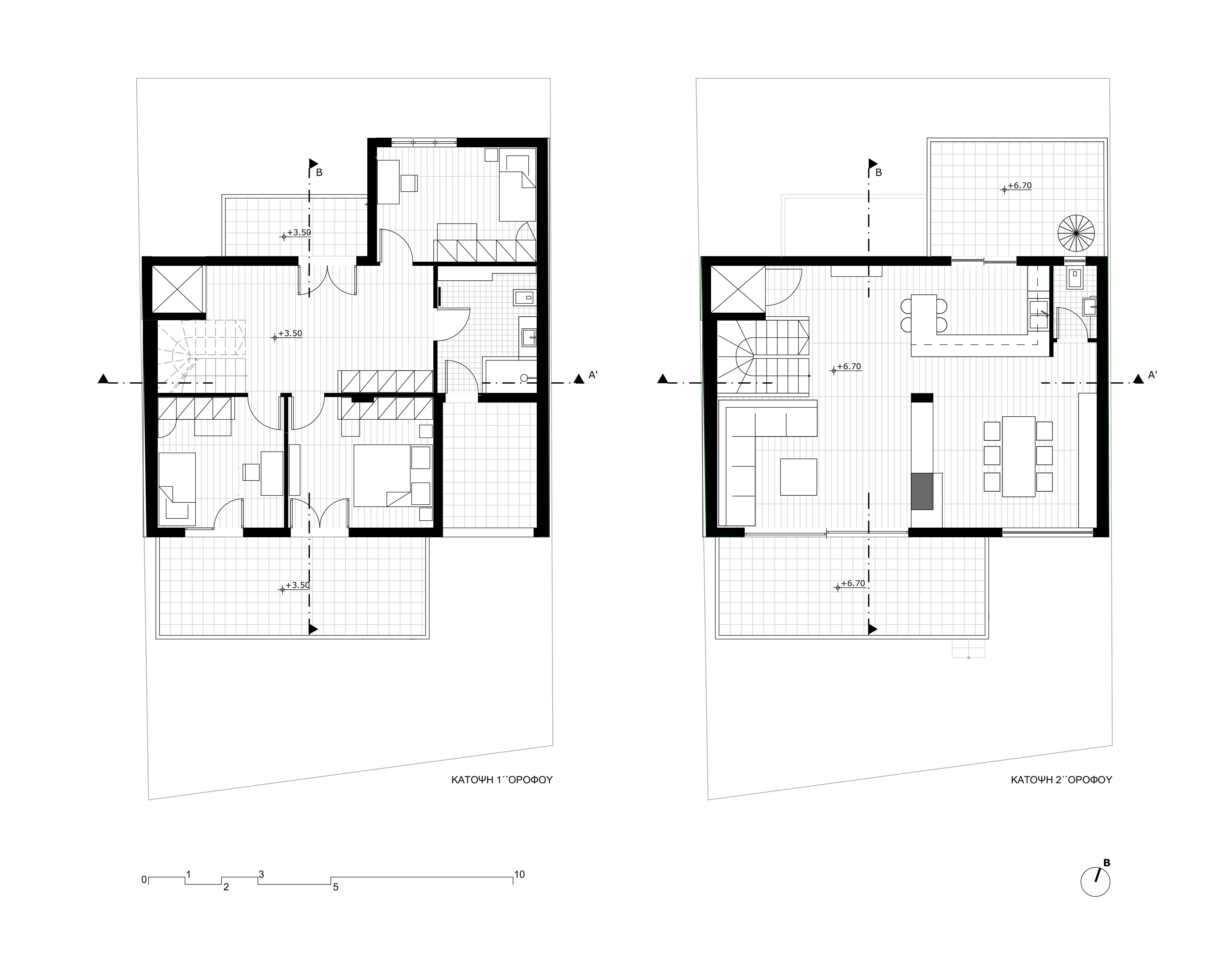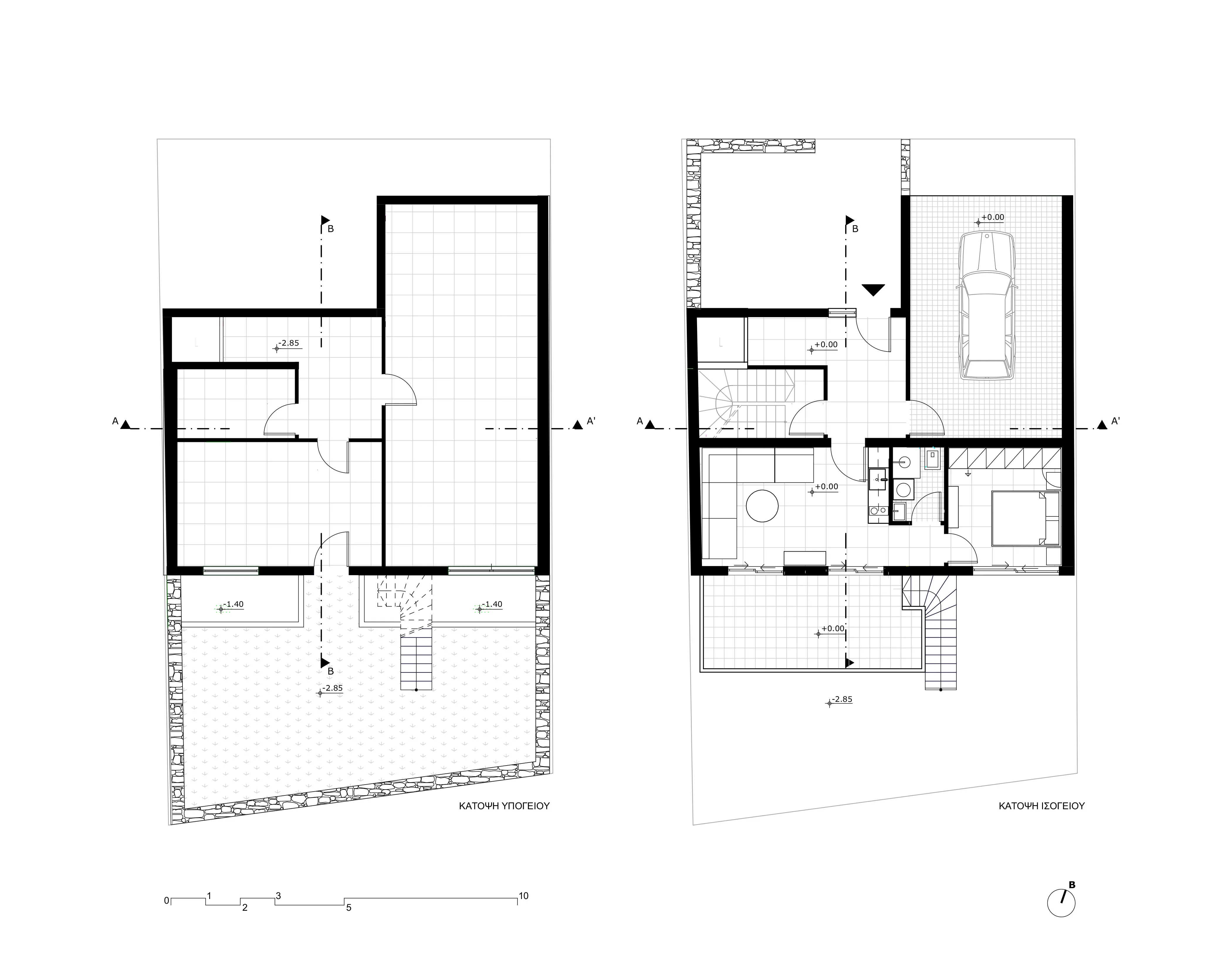 Ως βασική παράμετρος της μελέτης, αποτέλεσε το γεγονός, πως το οικόπεδο βρίσκεται στον πυκνό αστικό ιστό της πόλης και ανάμεσα σε δύο υφιστάμενα κτίσματα. Η ιδέα στηρίζεται στην δημιουργία κυβικών όγκων, οι οποίοι «απαντούν» στο μέτωπο των υπαρχόντων οικιών δημιουργώντας διαβαθμίσεις και εναλλαγές επιπέδων. Στην κύρια και βόρεια όψη δημιουργείται μια υποχώρηση του βασικού επιπέδου, η οποία συμπληρώνεται από χώρο πρασίνου. Η νότια όψη, η οποία κατευθύνεται προς τη θάλασσα, οργανώθηκε από μεγάλους εξώστες για την φυσική εκτόνωση των ενοίκων. Η έντονη κλίση του οικοπέδου, καθόρισε τα οριζόντια επίπεδα χρήσης, έχοντας ως βασικό στοιχείο τη δημιουργία μιας κατοικίας στους δύο επάνω ορόφους. Η αρχιτεκτονική, στηρίζεται σε σύγχρονες και λιτές λύσεις, οι οποίες προσαρμόζονται στο ευρύτερο περιβάλλον. Τα βασικά υλικά τα οποία χρησιμοποιήθηκαν, ήταν τα χρωματισμένα επιχρίσματα καθώς η τοπική πέτρα Καβάλας και εσωτερικά χρησιμοποιήθηκε το ξύλο βελανιδιάς.